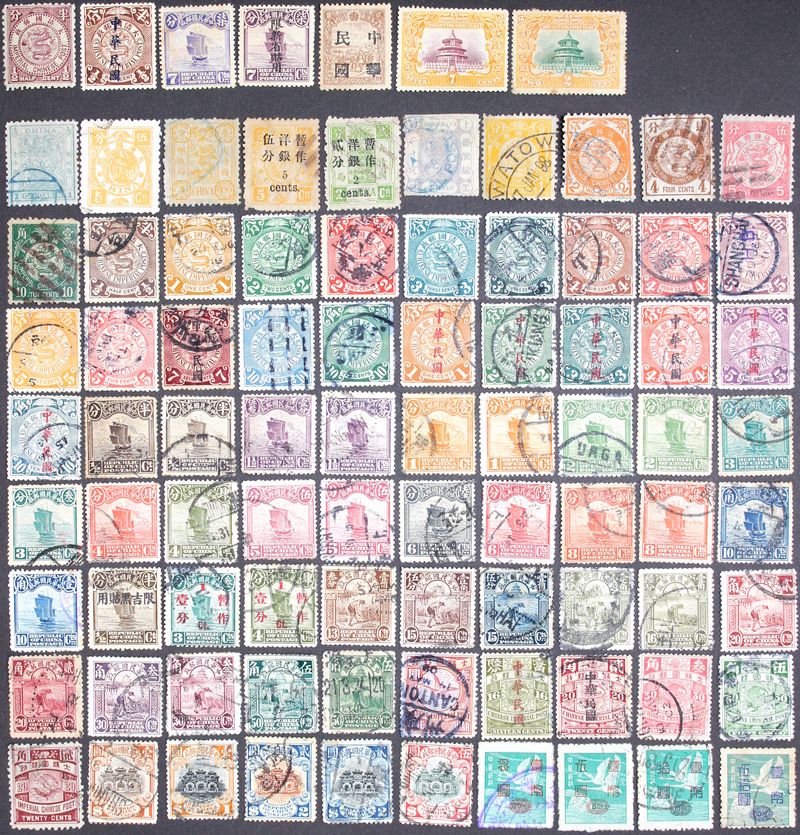 ● 商品・・・未使用&使用済 旧中国切手 海関郵政 暫作洋銀加蓋票 大清郵政 蟠龍票 躍鯉 中華民国 帆船票 帆船図 農獲図 宮門図 宣統元年 等 87点