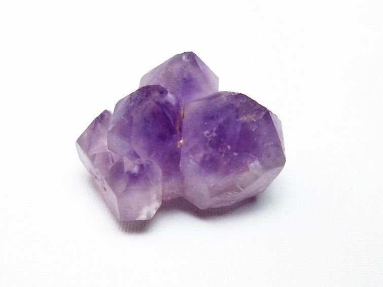 ■商品名: アメジスト クラスター ■商品ID: T514-3077 ■商品重量:約 8g ■商品サイズ: 高約:16mm 横約:18mm 厚約:23mm 【アメジストクォーツ(紫水晶)】 アメジストは鉄分によって紫色に発色した水晶の一種です。 名称はギリシャ語で酒の意味のmethyと否定辞のa、つまり「酒に酔わない」「この石でできた盃で酒を飲めば悪酔いしない」に由来するとされています。 「酒に酔わない」と言われる通り、アメジストは体調面への作用が大きく、血液を浄化して解毒、解熱作用を高め皮膚病の治療や不眠を解消するのにも用いられたと言われています。 アメジストは真実の愛を導く愛の守護石とも呼ばれ恋愛運UPの石としても広く知られています。 理想的な出会いをもたらす効果や持ち主に美や調和を与え、セクシーな魅力を引き出すとのことですので恋愛成就のお守りとしても最適といえるでしょう。 また、くよくよしたり傷ついたりしている時には癒し、目前の困難を乗り越えていけるように精神を強くするヒーリング効果も期待できます。 不眠にも効果があるとされていますので、ストレスを抱えている人にもおすすめの石です。 ⇒ アメジストをもっと詳しく ◆ワンポイント情報 アメジストは産地によって結晶や色味の傾向が変わります。 例えばブラジル産は結晶が大きめだが色味は少し薄め、ウルグアイ産は結晶は小さく細かいが色味は濃紫の傾向、メキシコ産は細長い結晶でライラックの様な明るく透明感のある紫など特徴が異なります。 産地による好みが人によって分かれるのもアメジストならではと言えるでしょう。 |