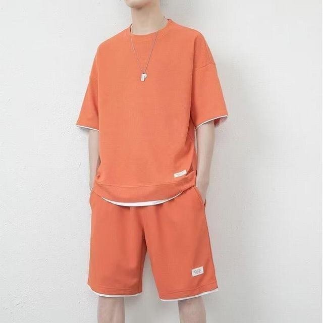 夏服 半袖 ジャージ 上下セット ショットパンツ サマー セットアップ メンズ 通気 部屋着 接触冷感 涼しいA03 M