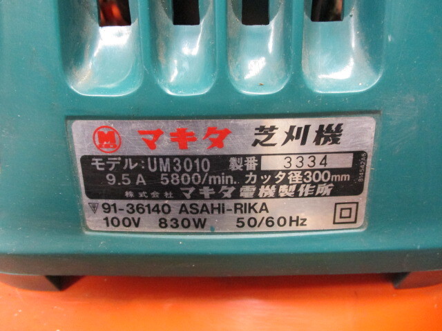 【7982】動作OK★マキタ makita★芝刈り機 UM3010 (電動工具) 元箱・説明書・延長コード付き | ||