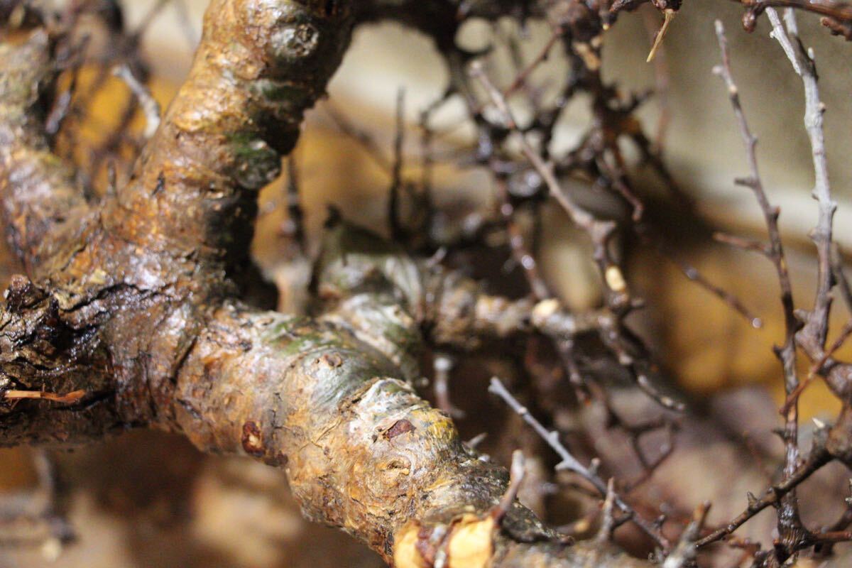 画像に写っている株の中には、白い粉(ベンレートやルートン)が付着しているものがあります。