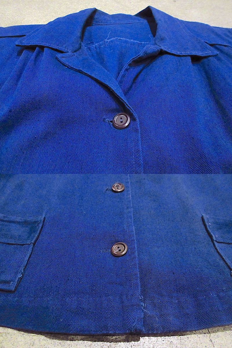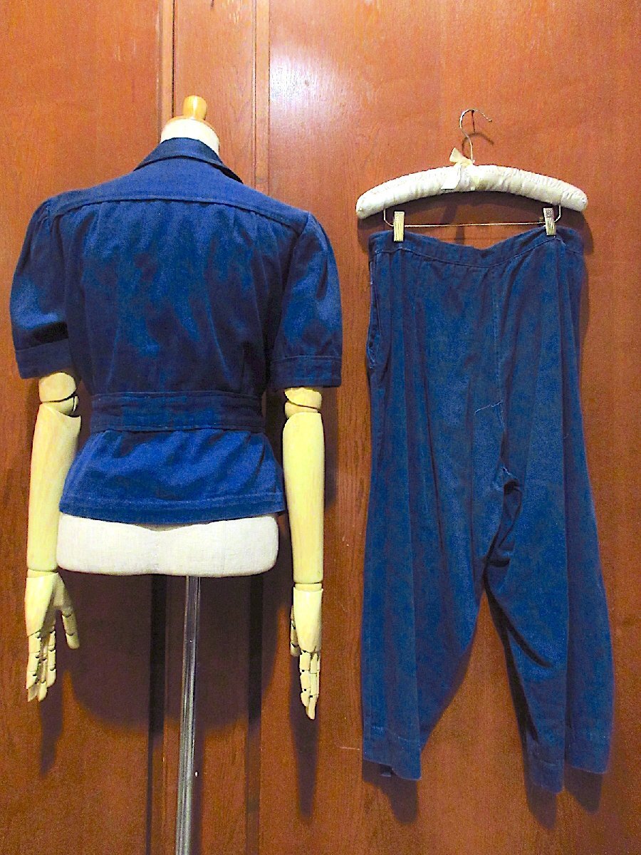 1940's レディース コットン 半袖ジャケット&パンツ ツーピース 紺