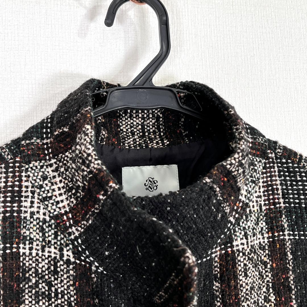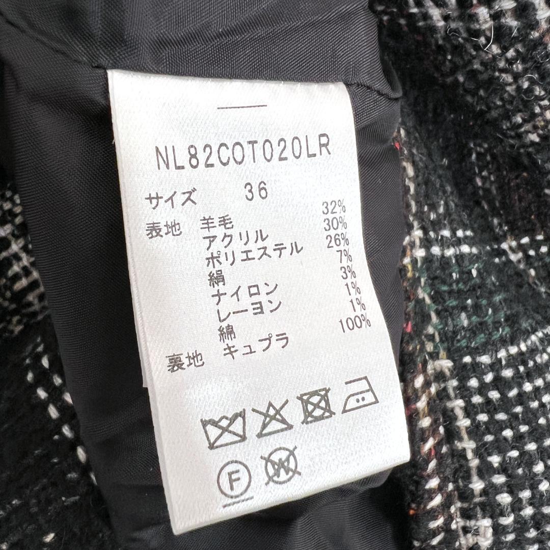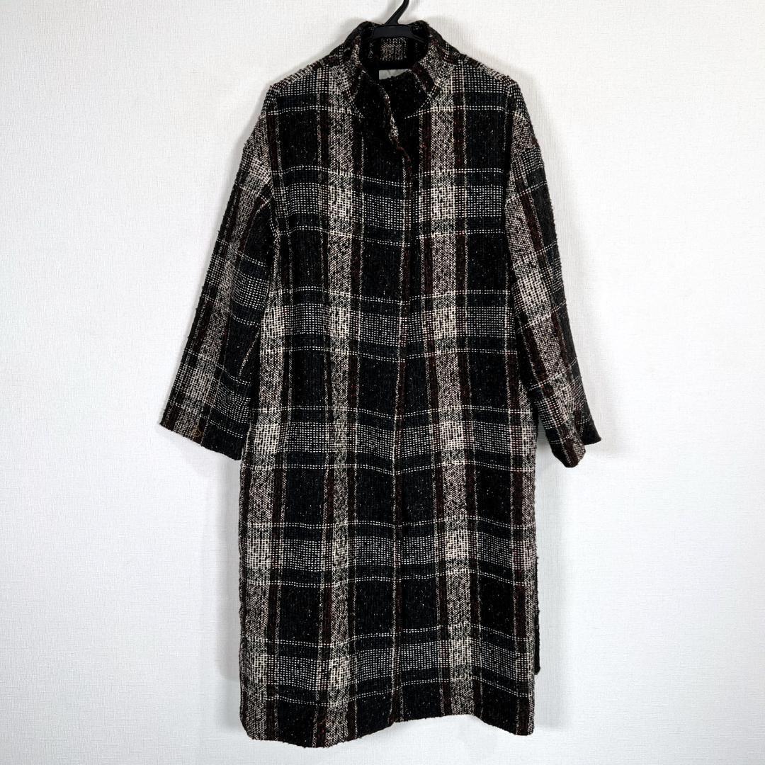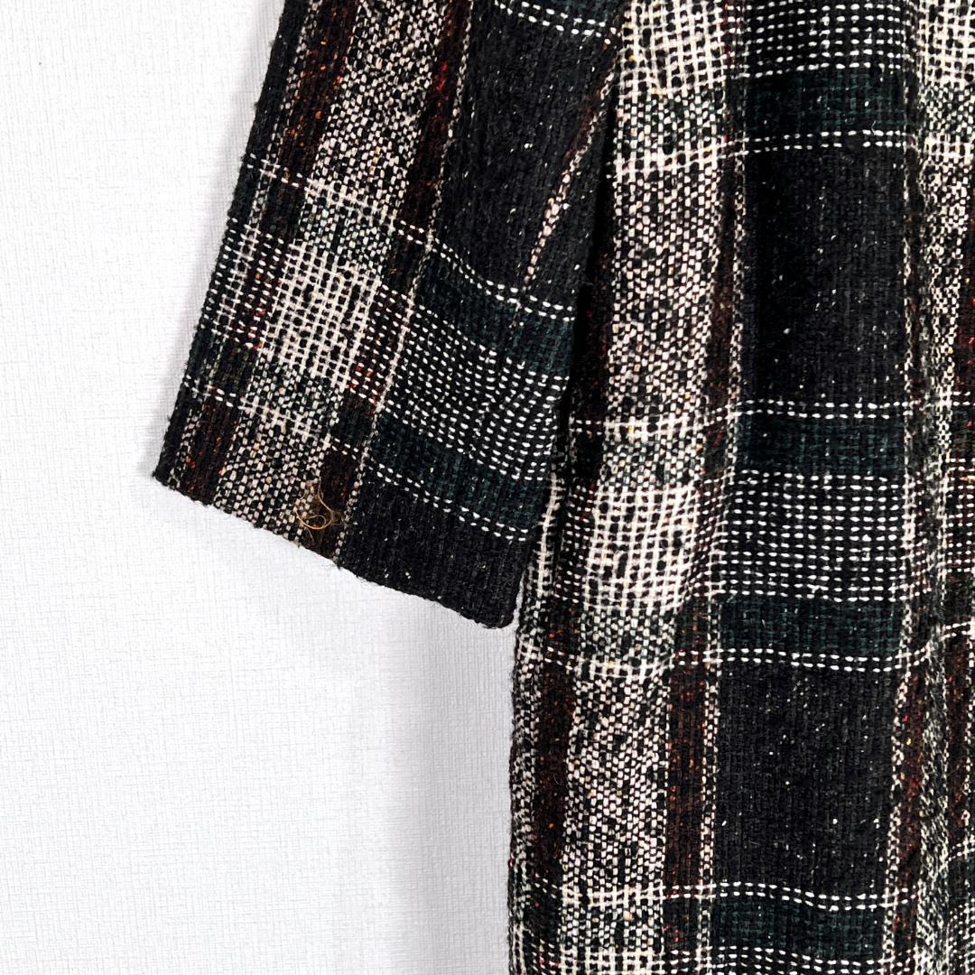 【nano universe】ナノユニバース 黒 ブラック系 ツイード チェック柄 ロングコート ジャケット レディース 女性用 36【c009】
