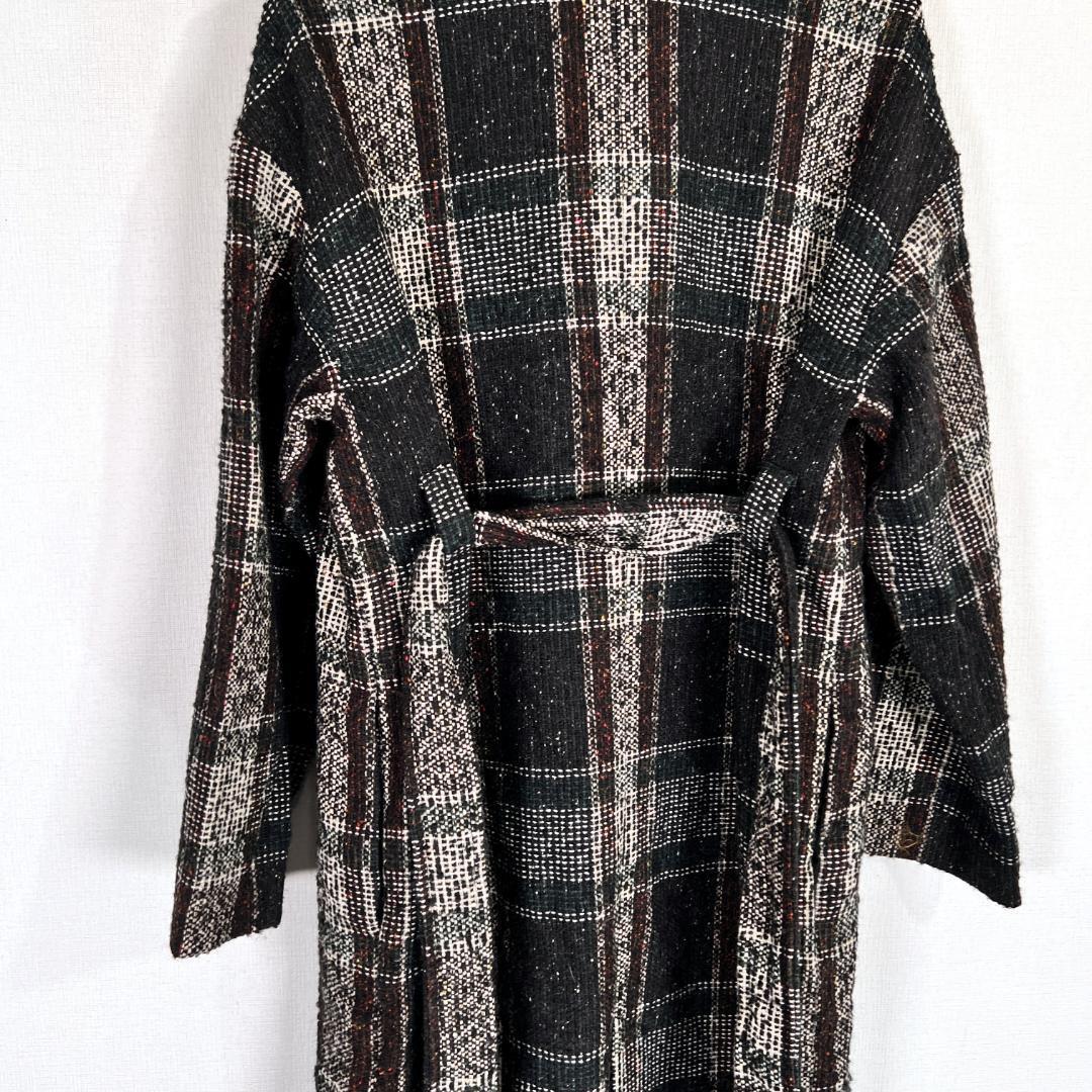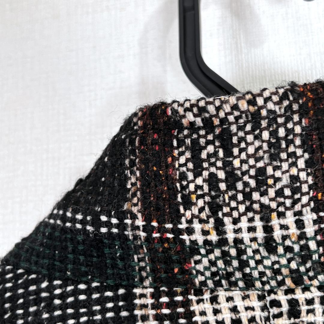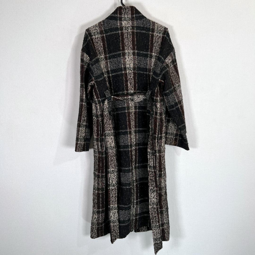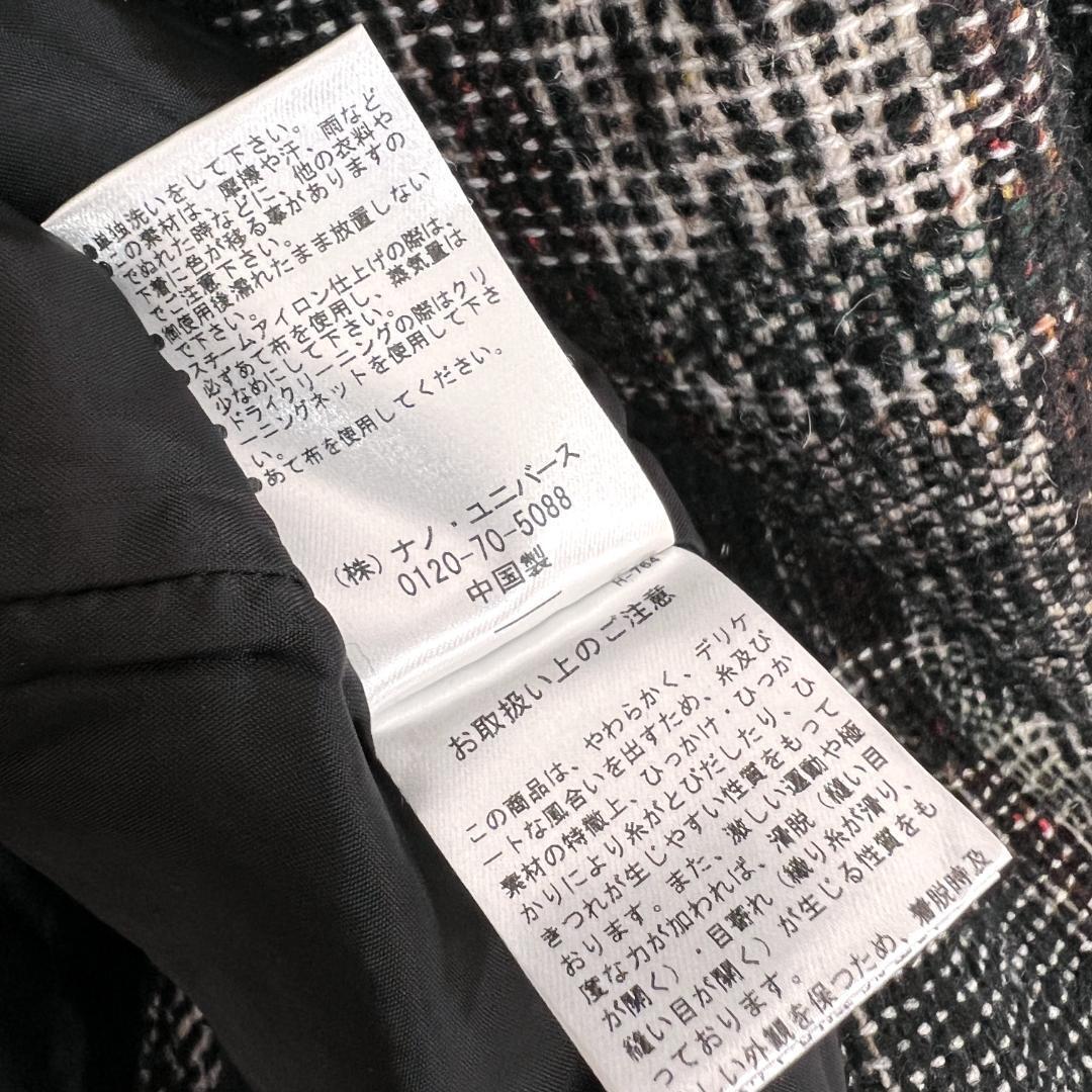 【nano universe】ナノユニバース 黒 ブラック系 ツイード チェック柄 ロングコート ジャケット レディース 女性用 36【c009】