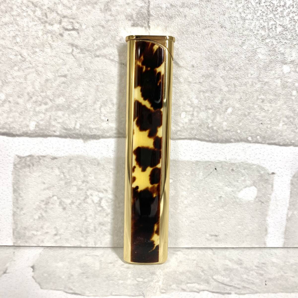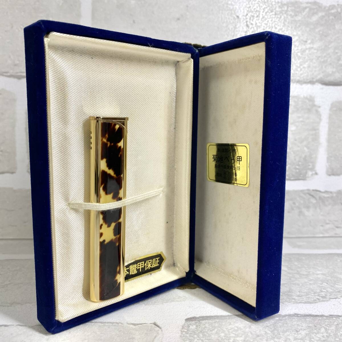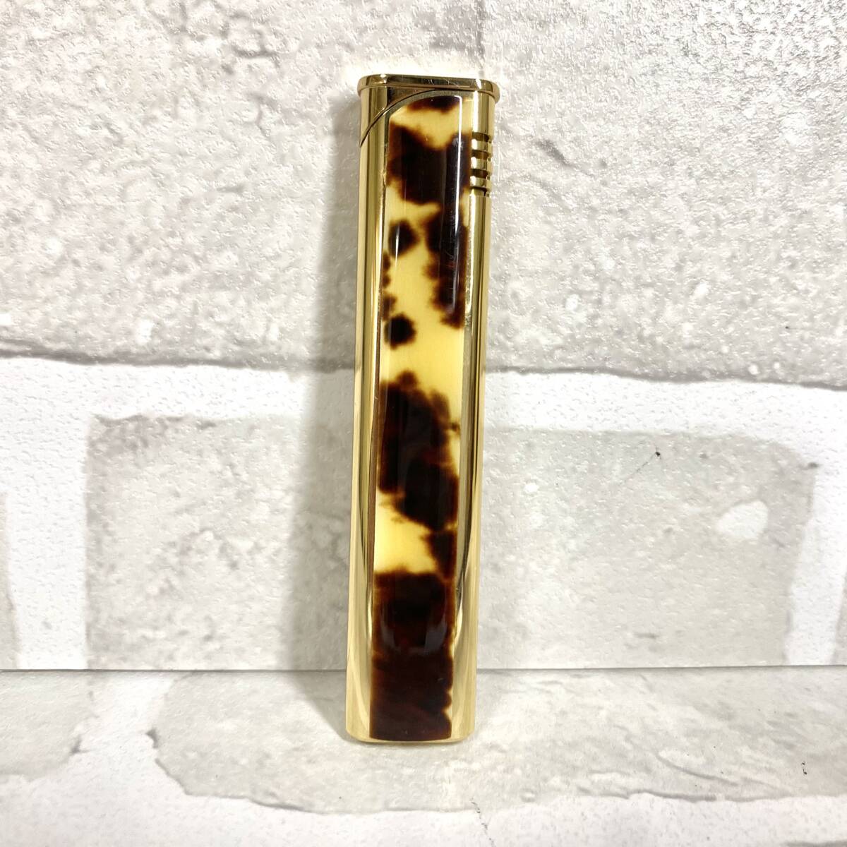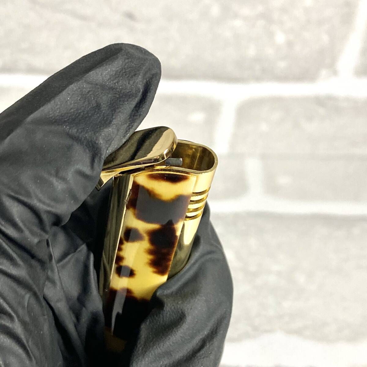 【菊池べっ甲 ガスライター ゴールドカラー ケース付き 火花確認× 着火具 喫煙具 趣味 コレクション】