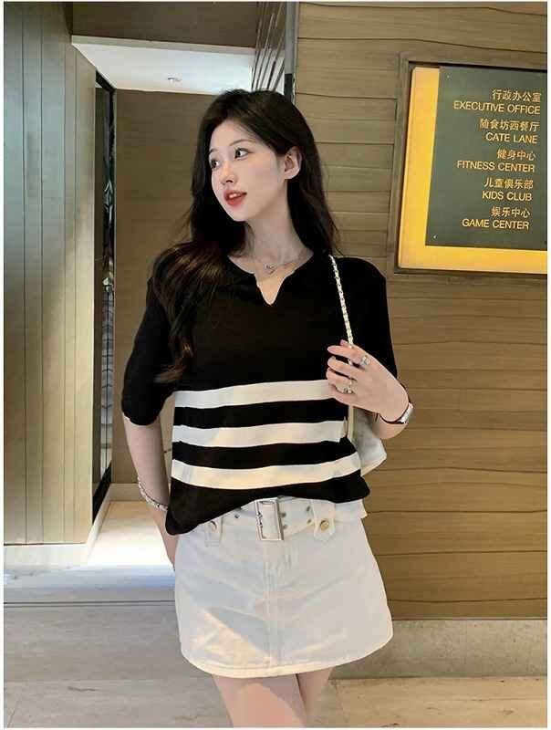 半袖トップス 半袖Tシャツ カジュアル 夏 【大きいサイズあり】 XL ボーダー柄