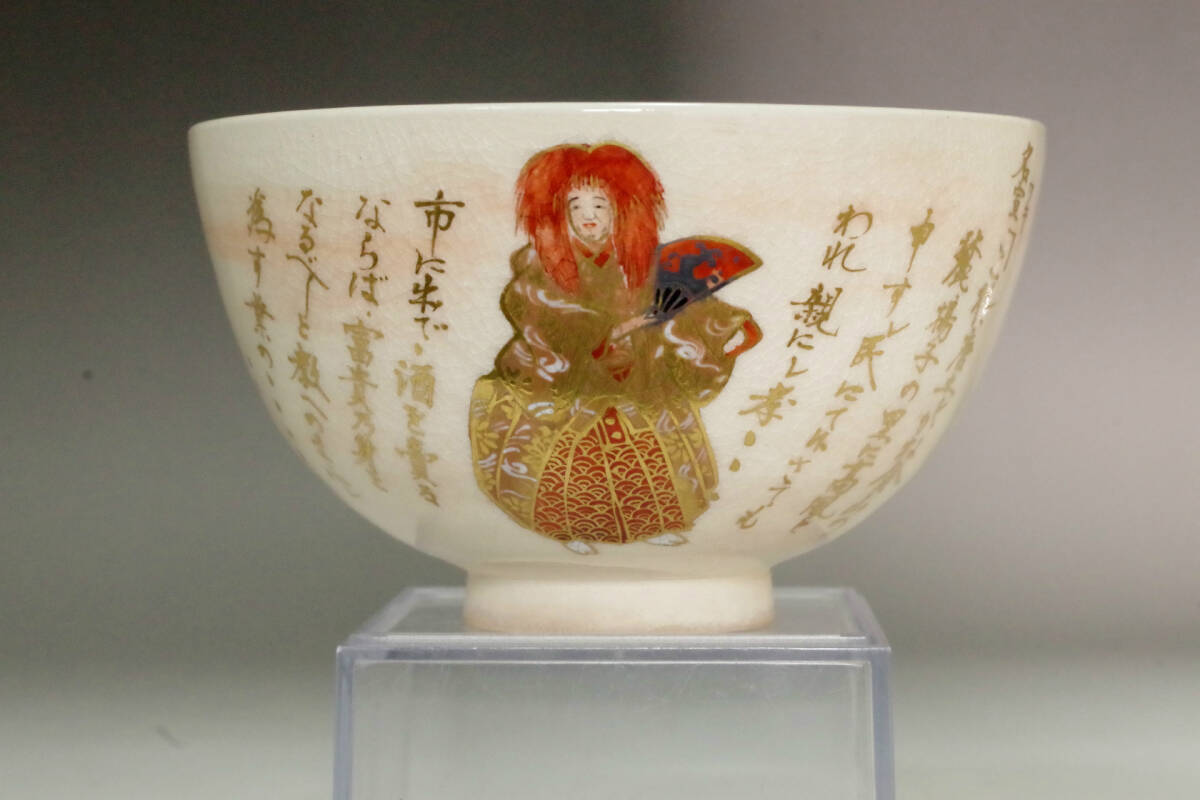 1円スタート 京都 真葛香斎 茶碗 共箱 聲朗々図 茶器 茶道具 骨董 古陶磁 陶印あり 茶会 茶席 真葛窯