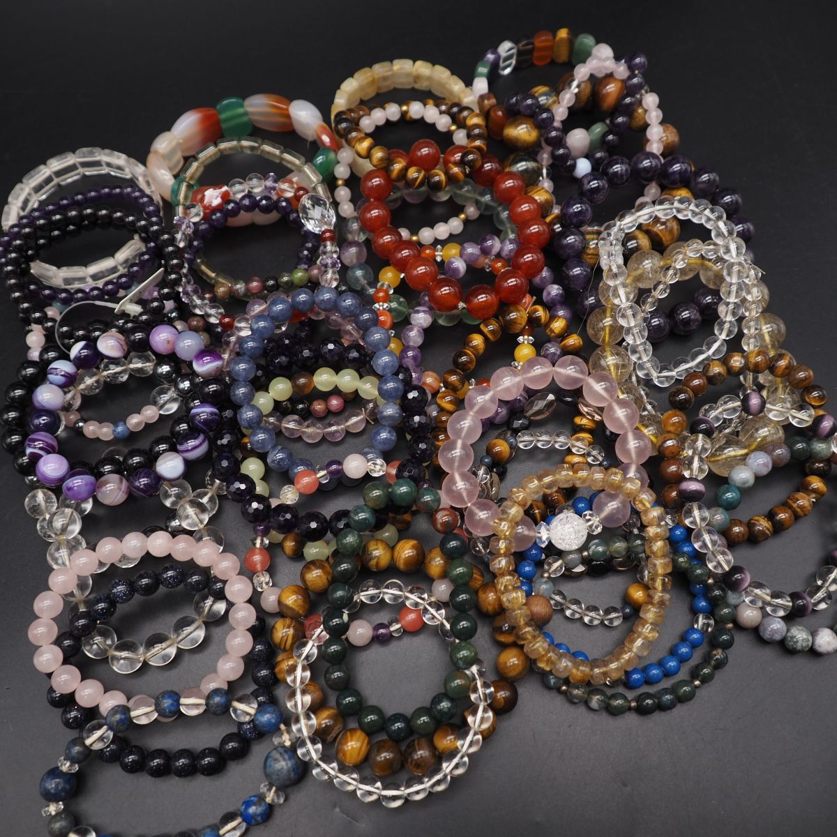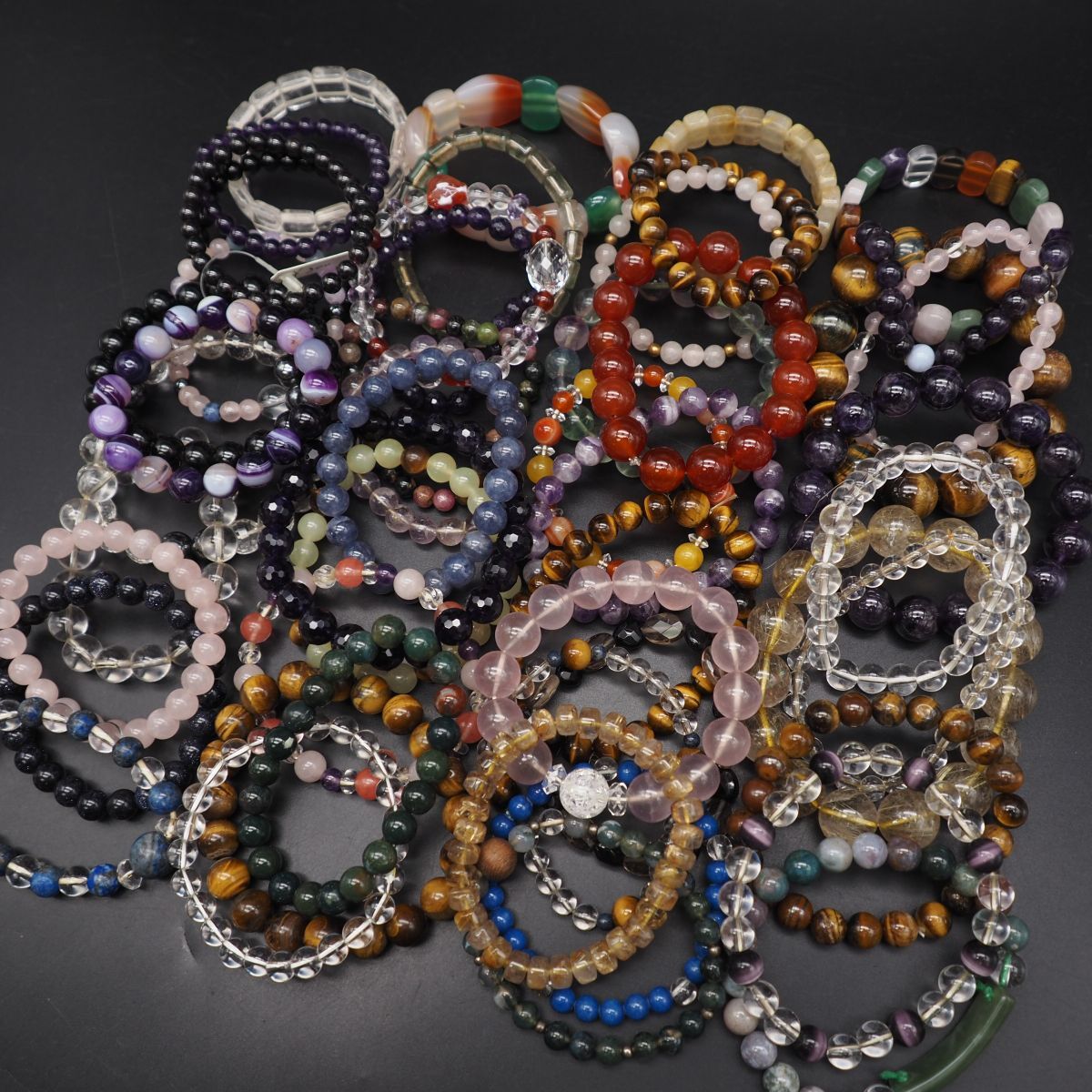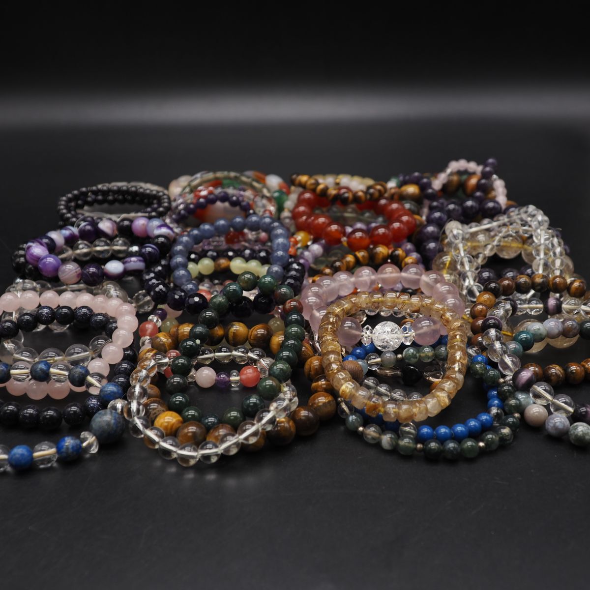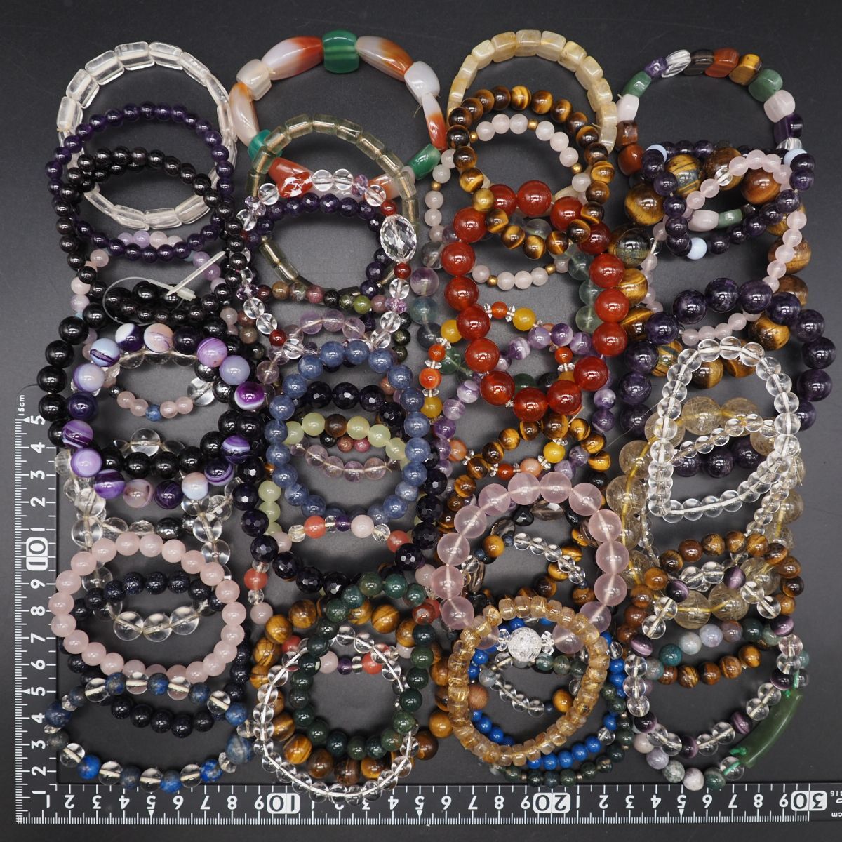 (PSB1001) 1円 パワーストーン ブレスレット 50本 大量セット ラピスラズリ ローズクォーツ アメジスト 瑪瑙 水晶 等 数珠 まとめて