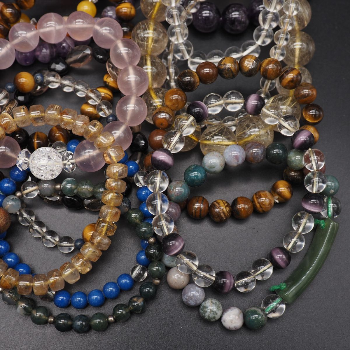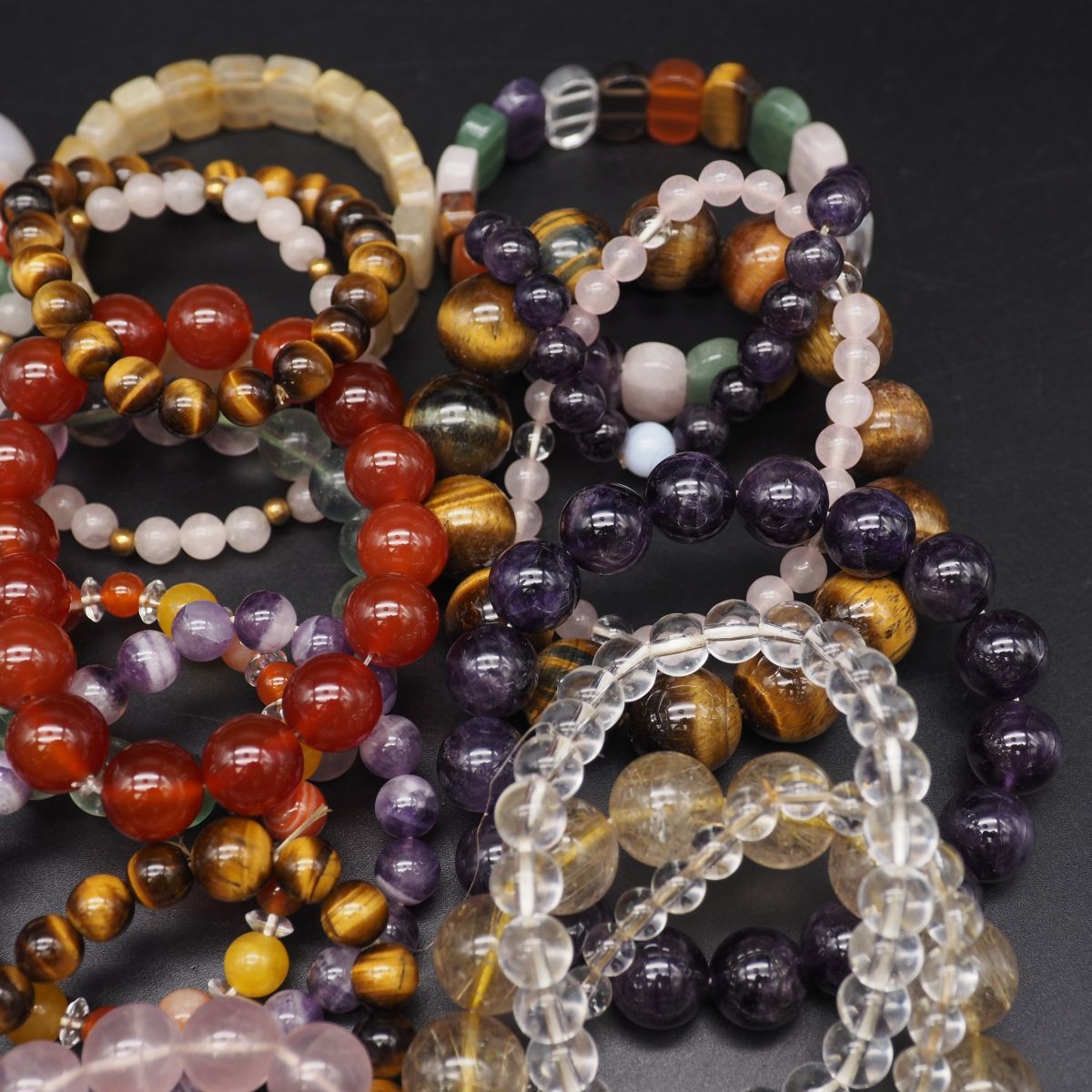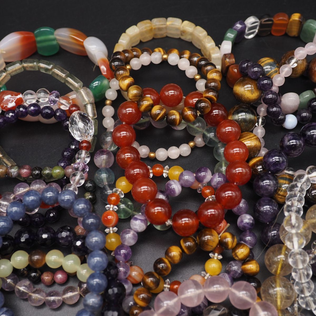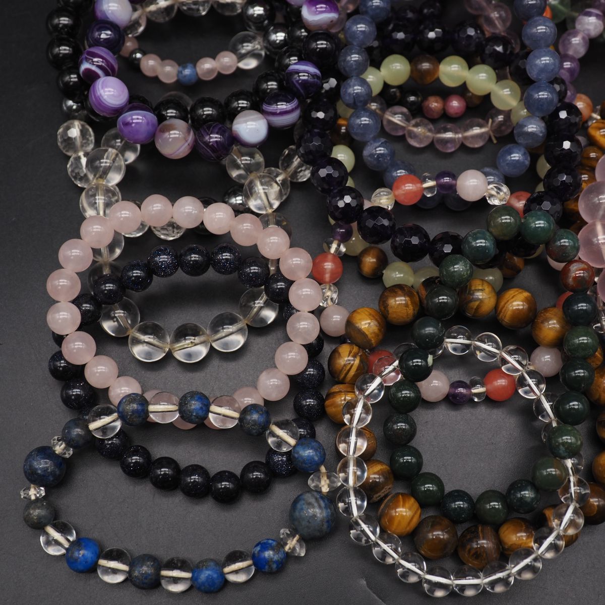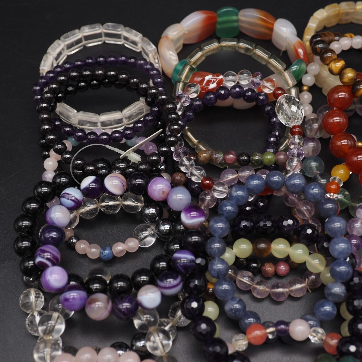 (PSB1001) 1円 パワーストーン ブレスレット 50本 大量セット ラピスラズリ ローズクォーツ アメジスト 瑪瑙 水晶 等 数珠 まとめて