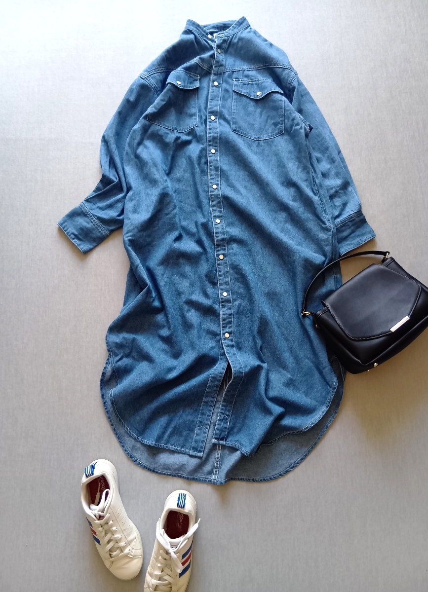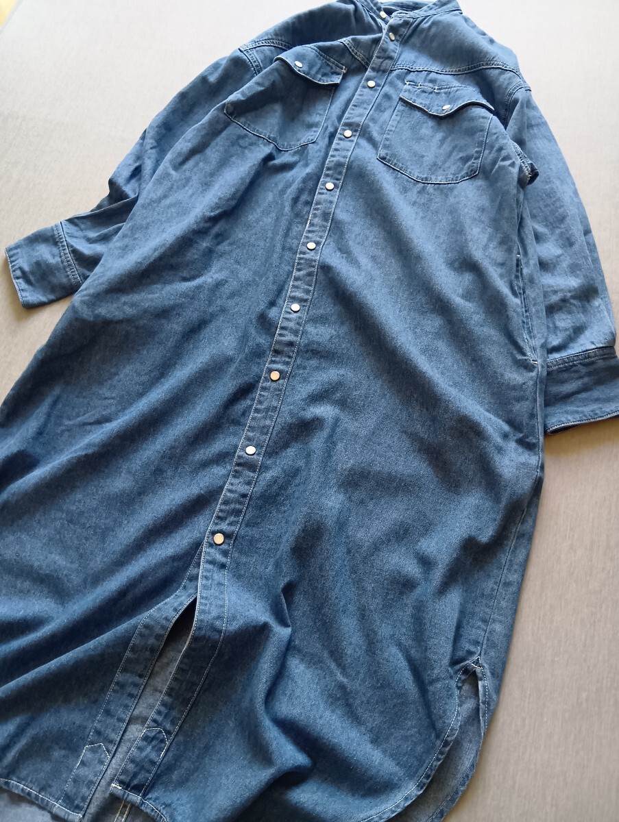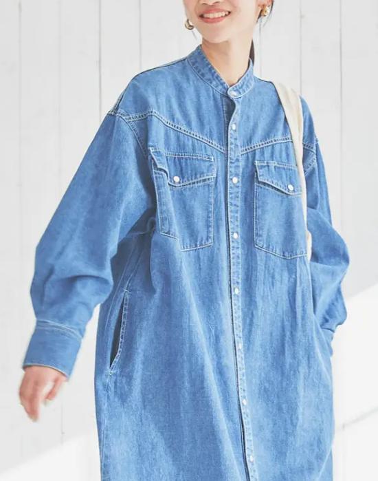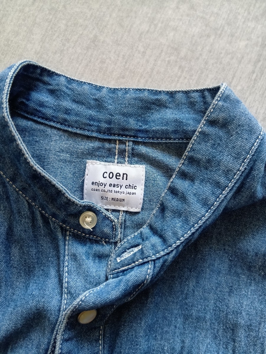 coen コーエン ウエスタンデニムバンドカラーシャツワンピース