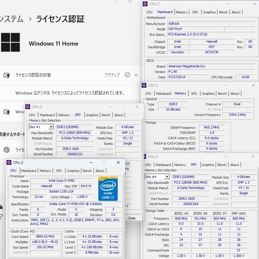 【中古】ASRock H97 Pro4 + CPU(i7 4790)メモリ(4GBx4=16GB)SSD(120GB)セット