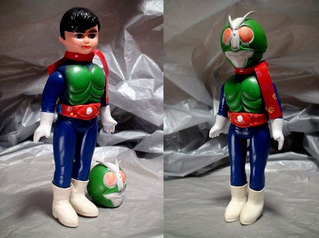仮面ライダー 2号 ⑧ 当時物 旧バンダイ 怪人 ソフビ人形 マスク 面取れ 1972年「検 ポピー タカトク マルサン 無版権 パチ怪獣 メディコム