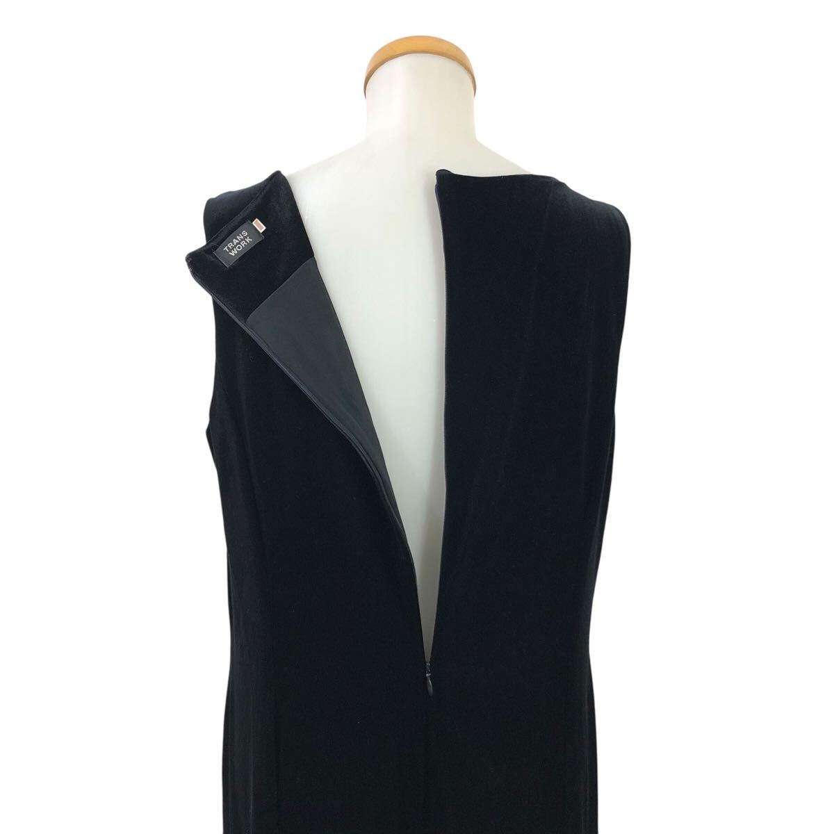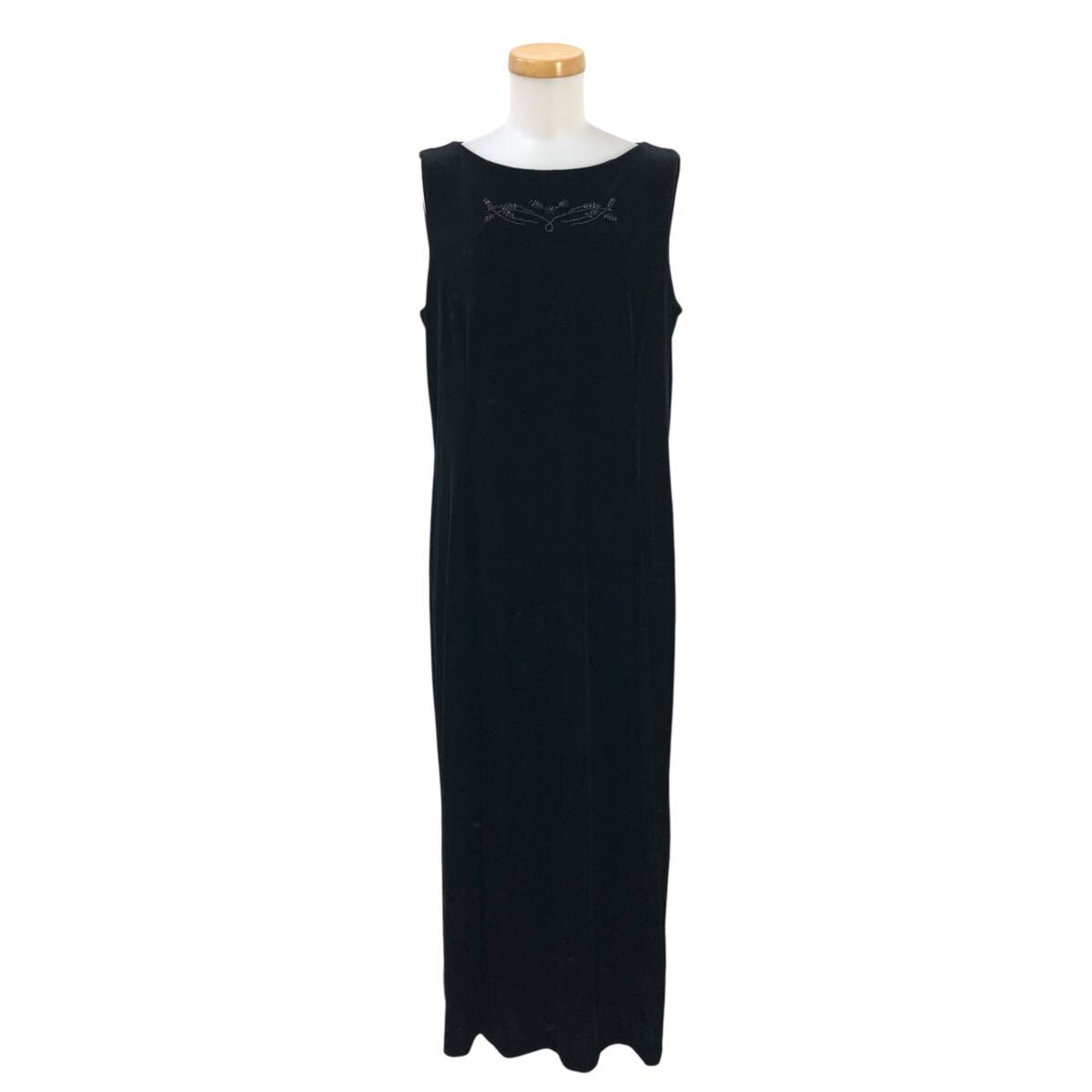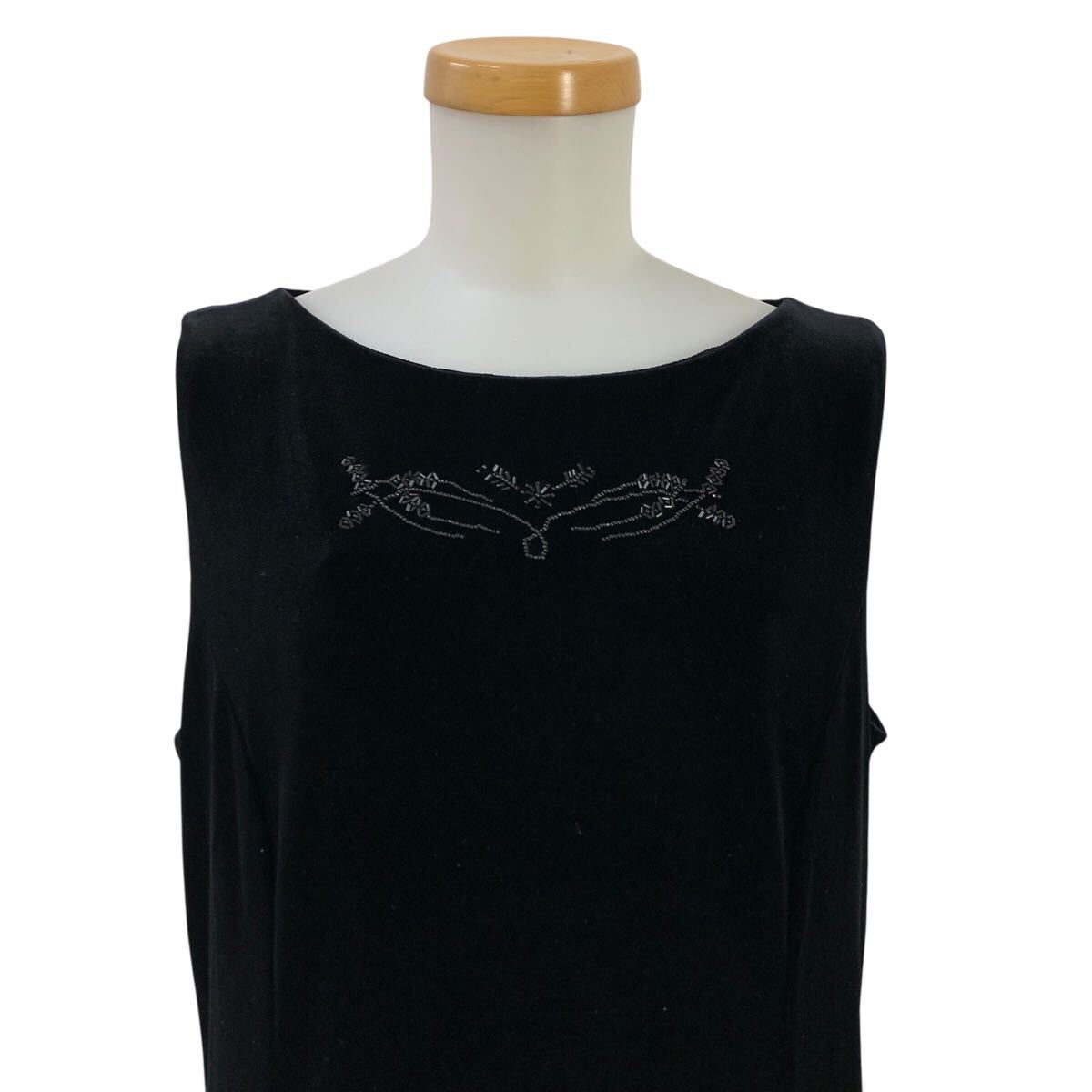 10Nm328-30 美品 大きいサイズ TRANS WORK トランスワーク ビーズ ノースリーブ ベロア ロング ワンピース ブラック レディース 15ABR