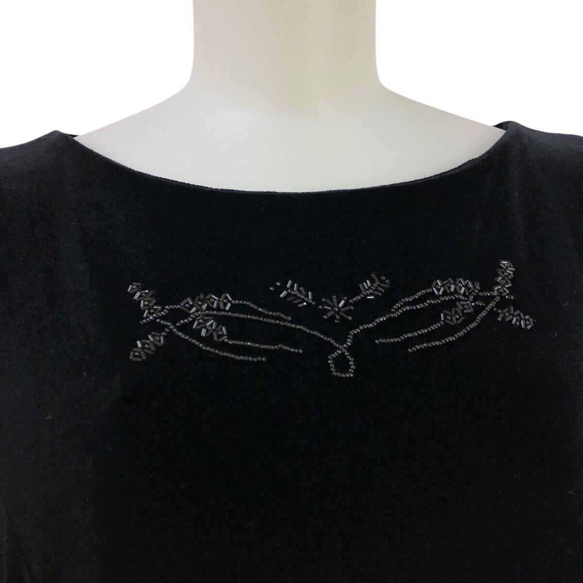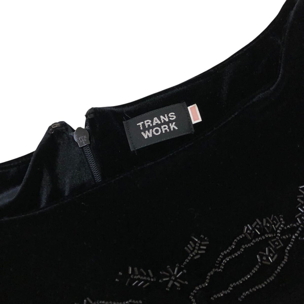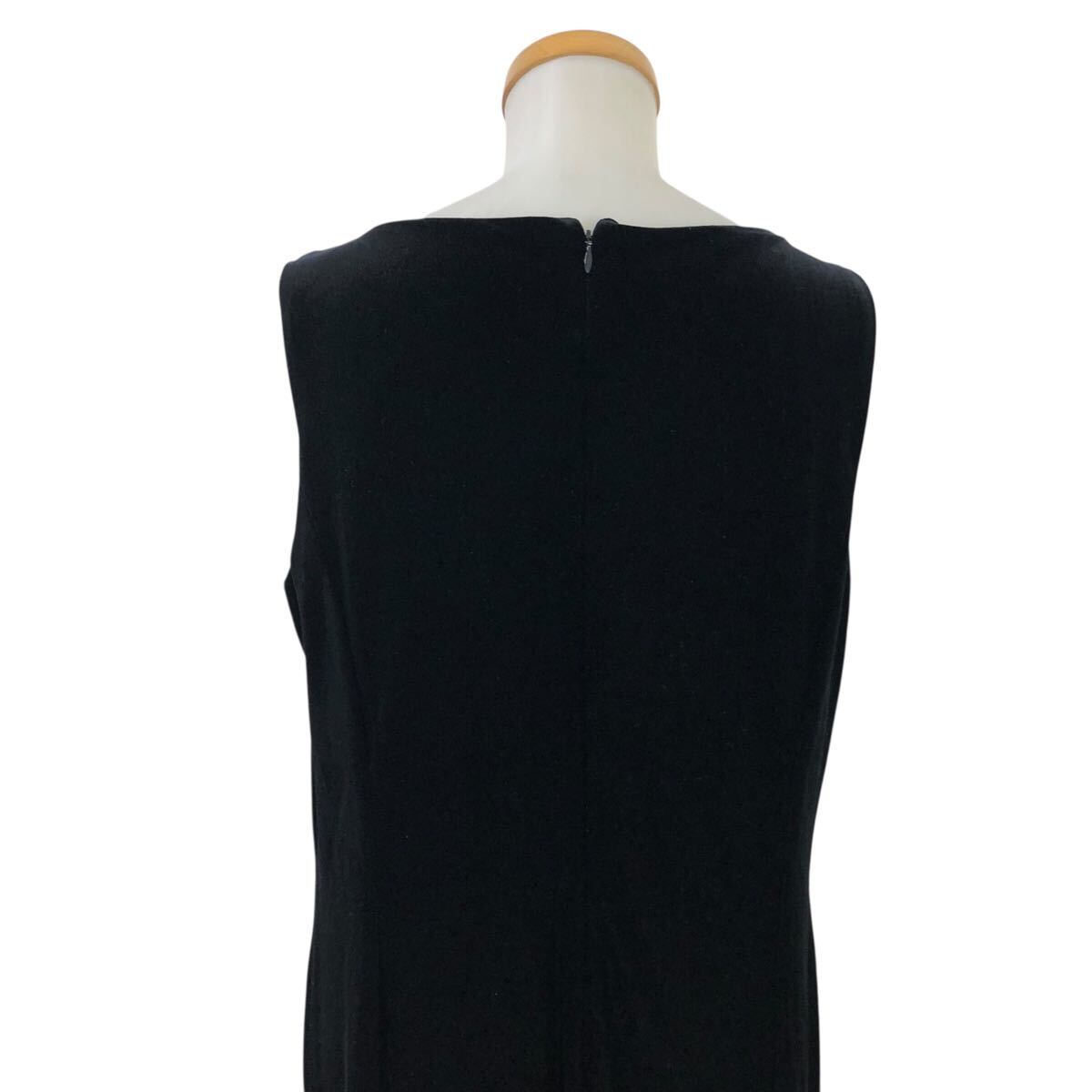 10Nm328-30 美品 大きいサイズ TRANS WORK トランスワーク ビーズ ノースリーブ ベロア ロング ワンピース ブラック レディース 15ABR