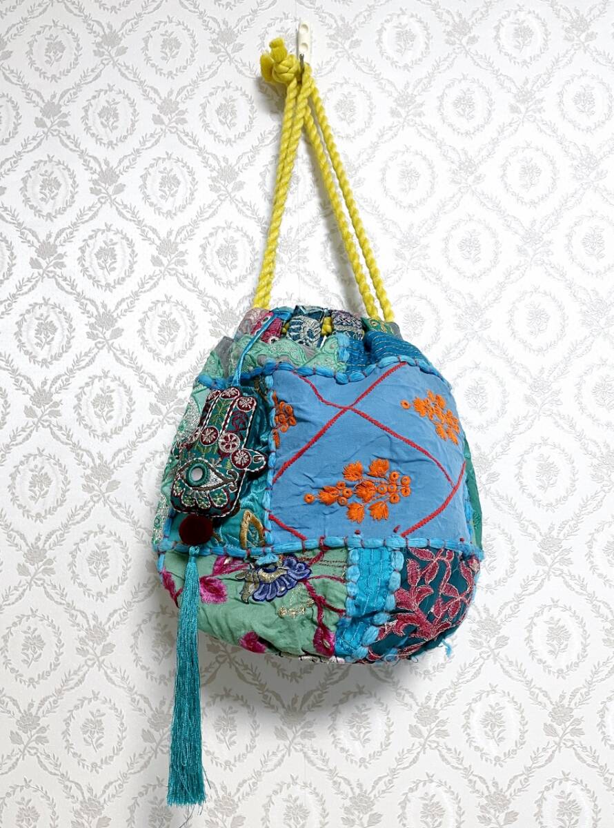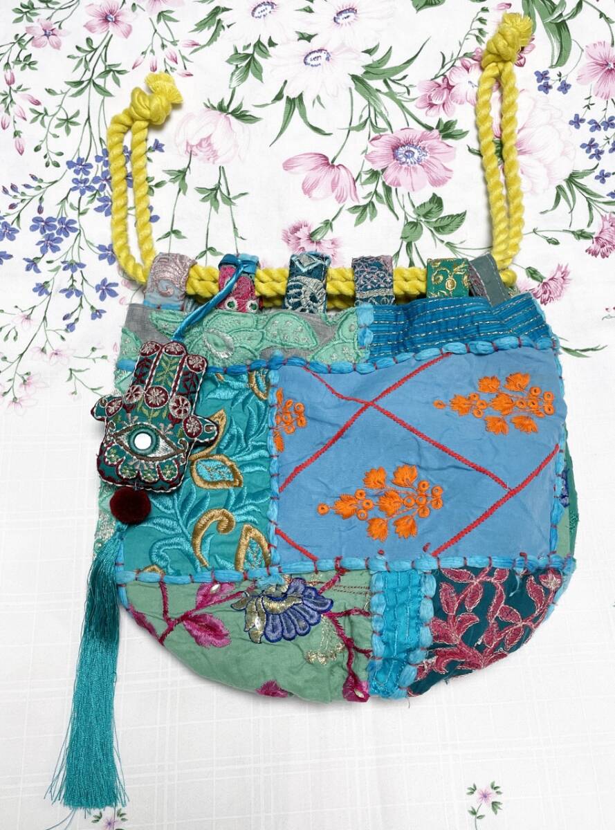 MALAIKA マライカ エスニック カンバディア ブルー柄物 巾着バッグ