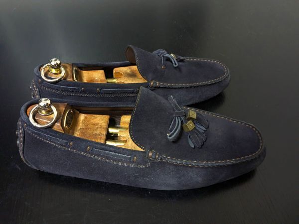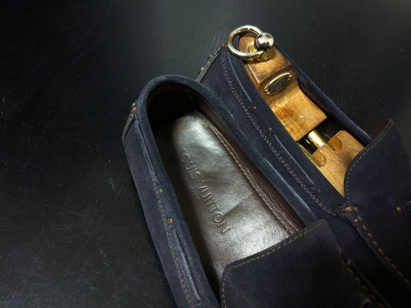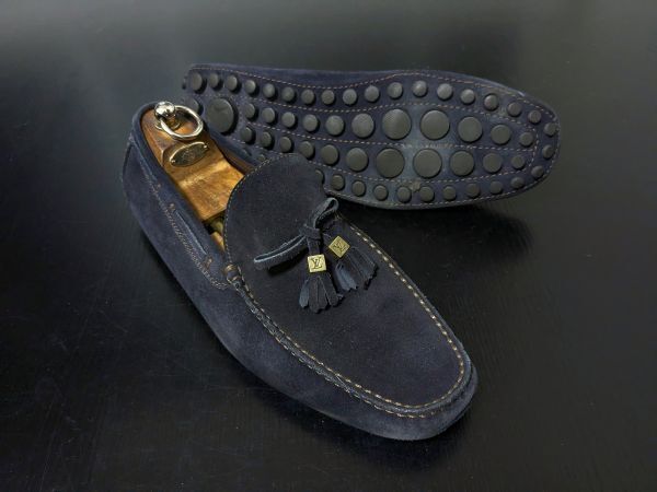 ヴィトン 8.5 LOUIS VUITTON ♯FA0069 濃紺 リボンドライビングスリッポン ローファー