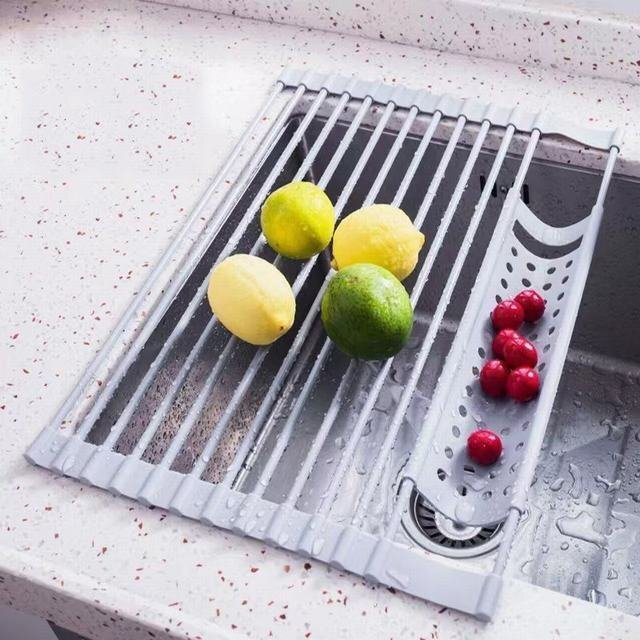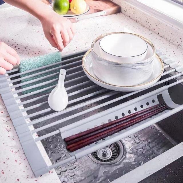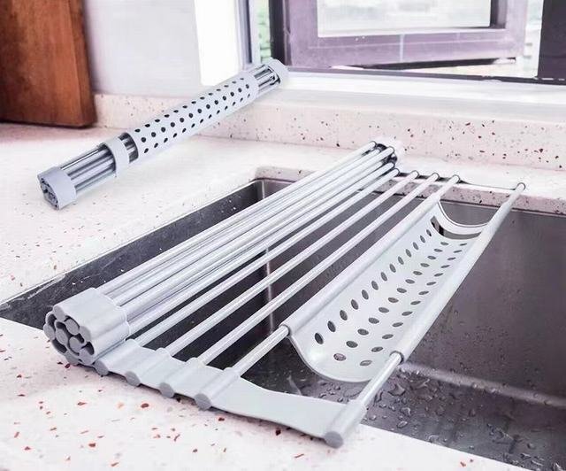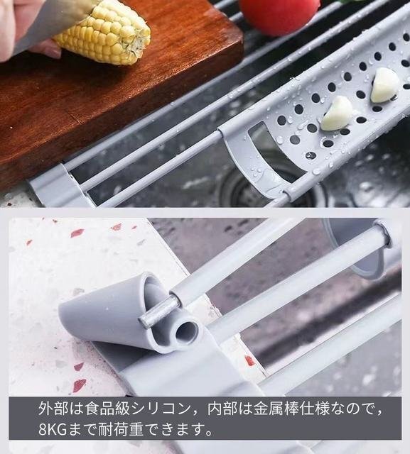サイズ:画像をご参照ください。 折り畳み式の水切りラックです。 小さく丸めてたためる設計でサイズをご自宅のシンクの大きさに合わせられるので、キッチン周りのスペースを有効活用できます。 耐荷重8kg, 耐熱250度の特別仕様のため、2.3人分の皿?カトラリーなどものを置いても安定?安心です。 さらに棒と棒の間を切ることができるので、お好きな長さに調節できます。
