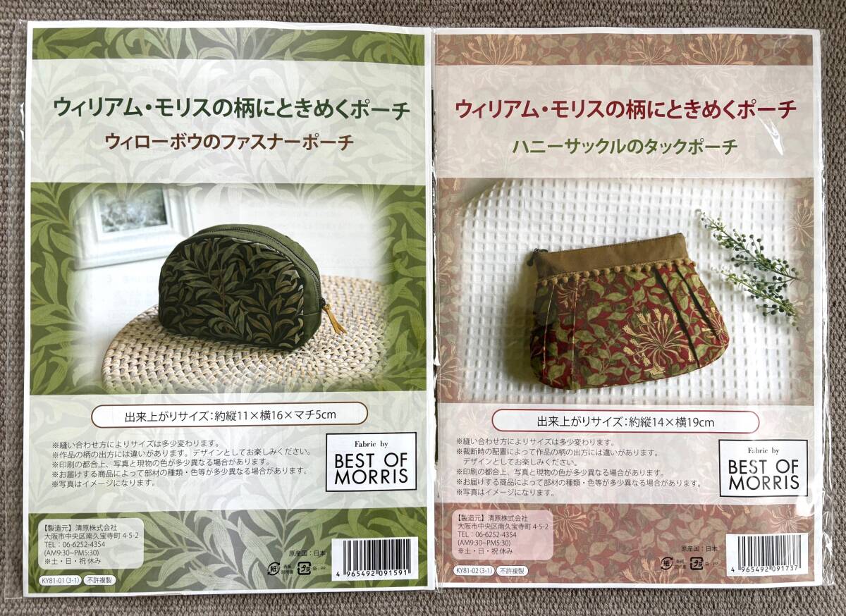 新品・未使用、ウィリアム・モリスの柄にときめくポーチのキット、2種類セットです。