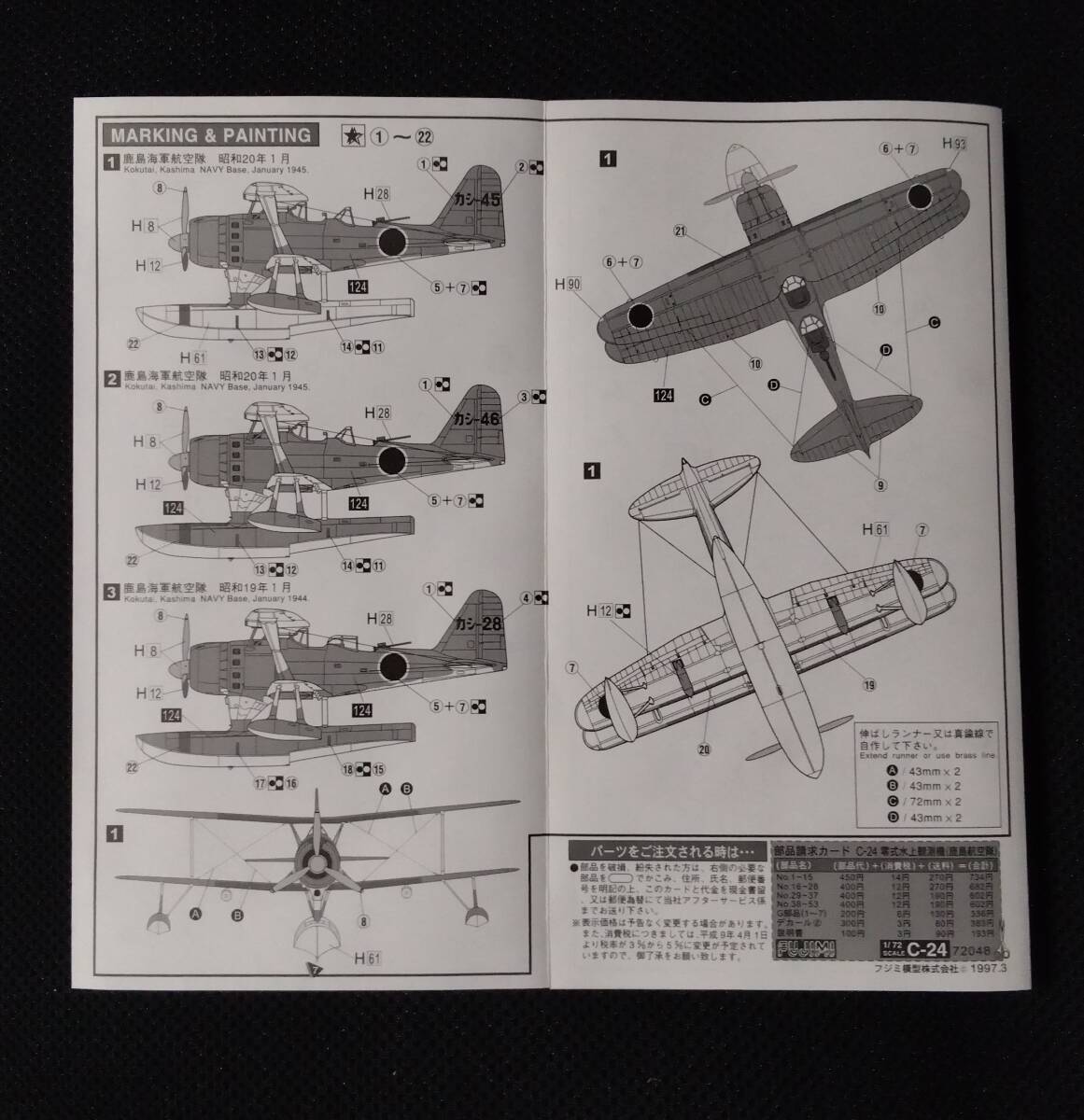 フジミ1/72スケール、日本海軍零式水上観測機のプラモデル2種セットです。