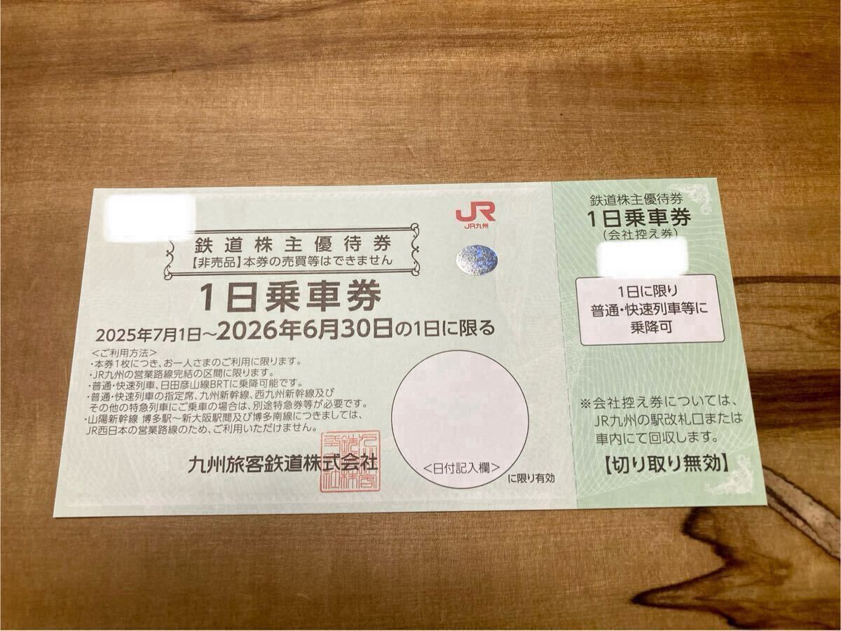 JR九州 1日乗車券1枚と2500円株主優待券です。