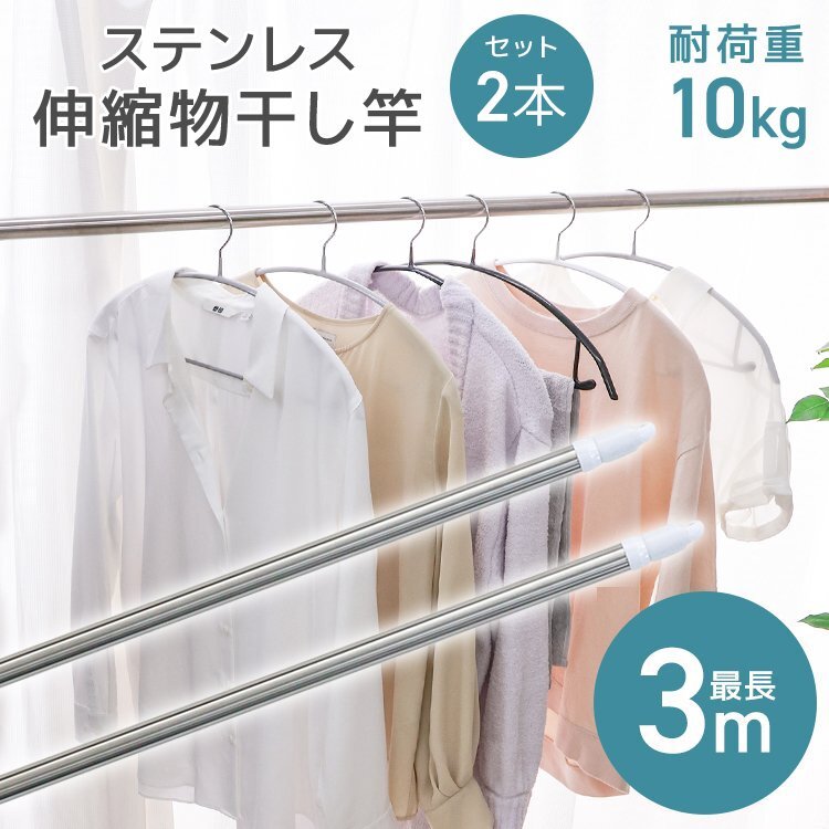 片側が伸縮するので、短く使う時でもバランスの取れた形になります。 錆びにくいステンレス被覆鋼管を使用しています。 【商品仕様】 商品サイズ:(約)長さ220~300cm×直径3cm 耐荷重:(約)10kg 材質:ステンレス、ABS樹脂 他 【注意事項】 ・商品は、モニターによって色合いが異なって見える場合があります。 ・仕様・デザインは改良のため予告なく変更することがあります。 |