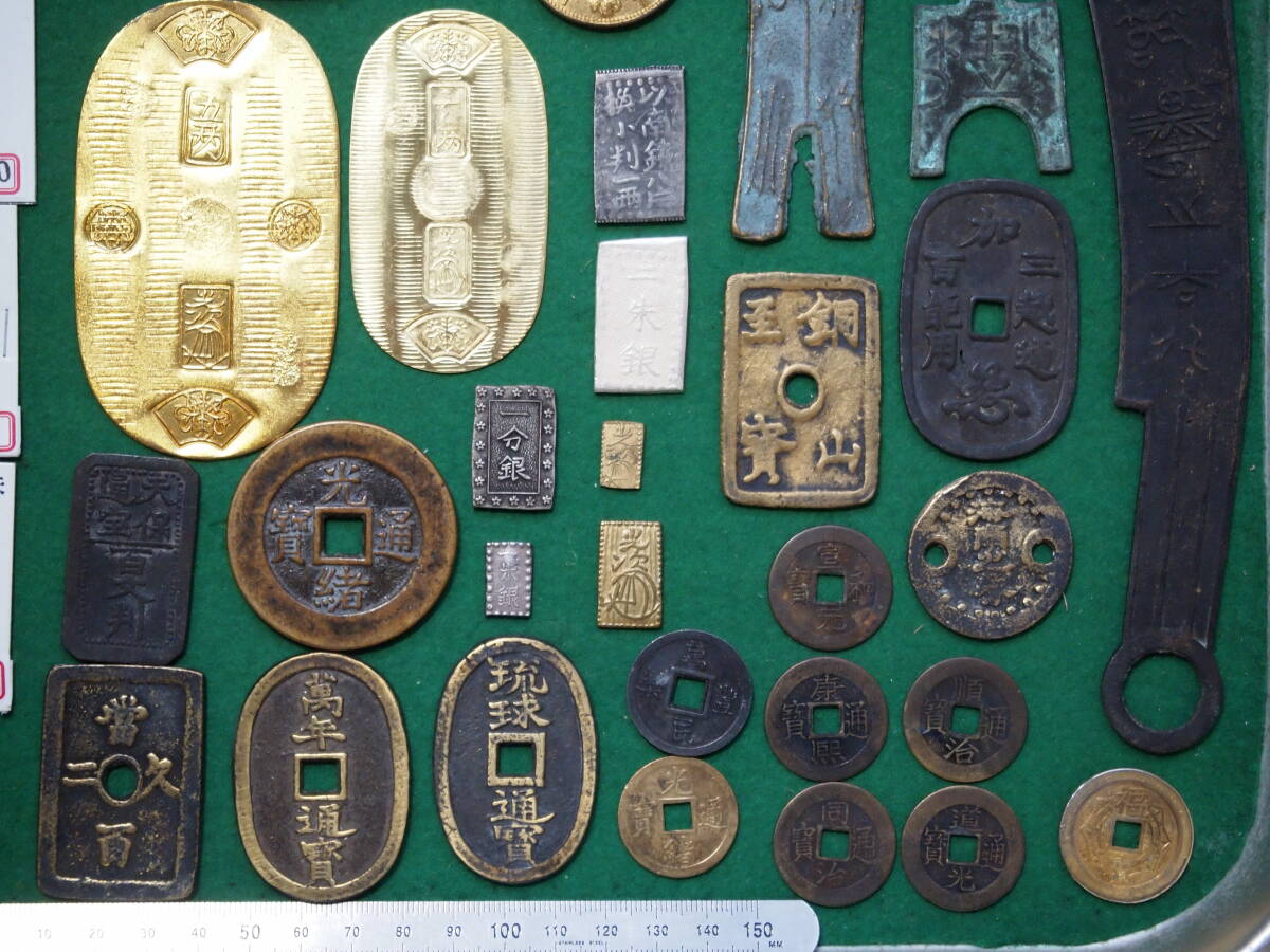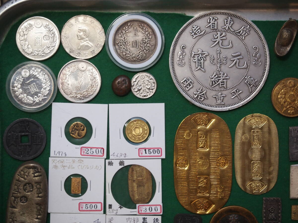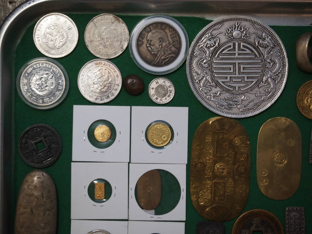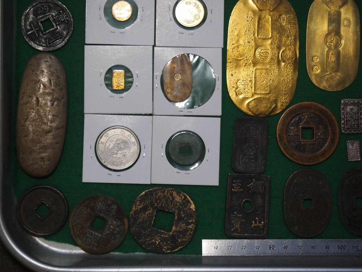 旧20円金貨、新10円金貨、小判、円銀、貿易銀、一分銀、二分金、豆銀、長銀、中国銀貨、刀銭、甲州金