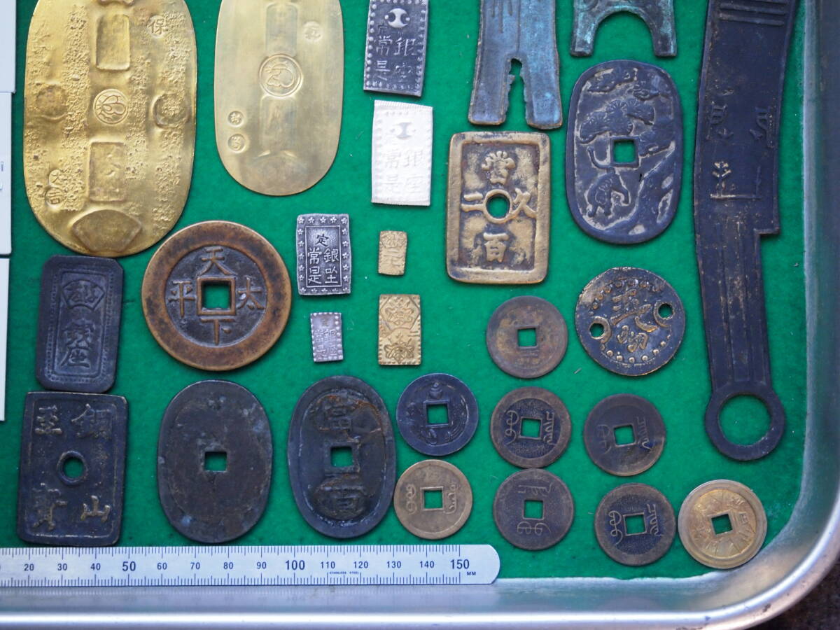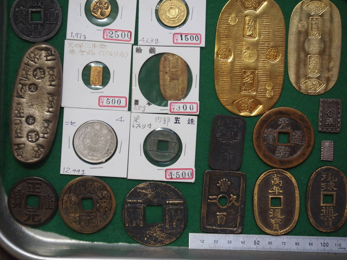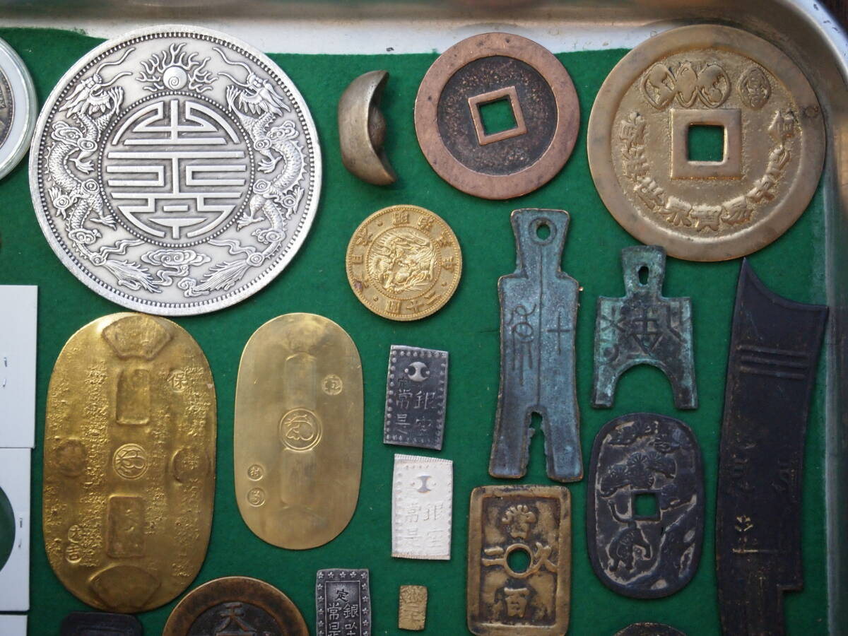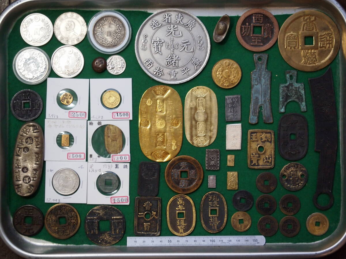 旧20円金貨、新10円金貨、小判、円銀、貿易銀、一分銀、二分金、豆銀、長銀、中国銀貨、刀銭、甲州金