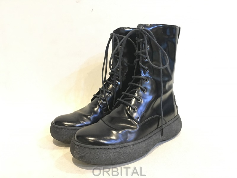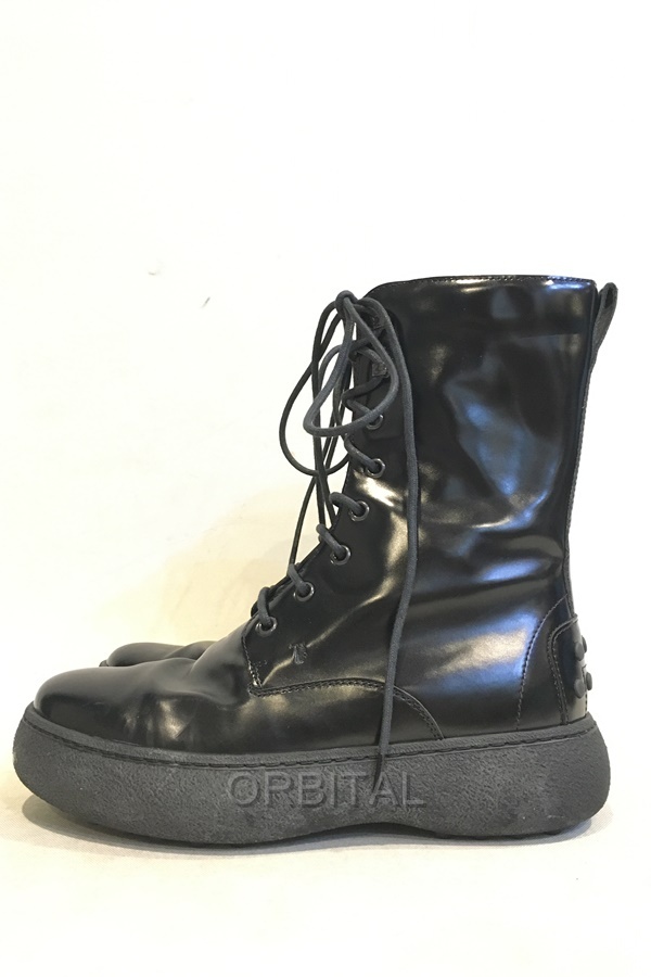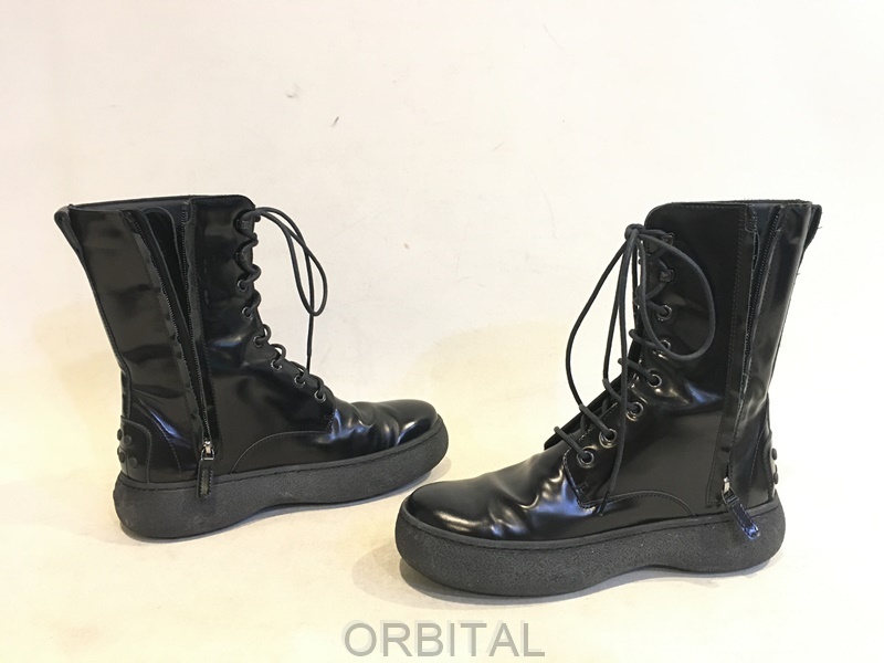 TOD'S トッズ ウィンターゴンミーニ シャイニーレザー レースアップブーツ ブラック 38.5 24.5cm位 イタリア製