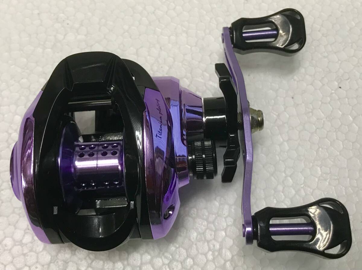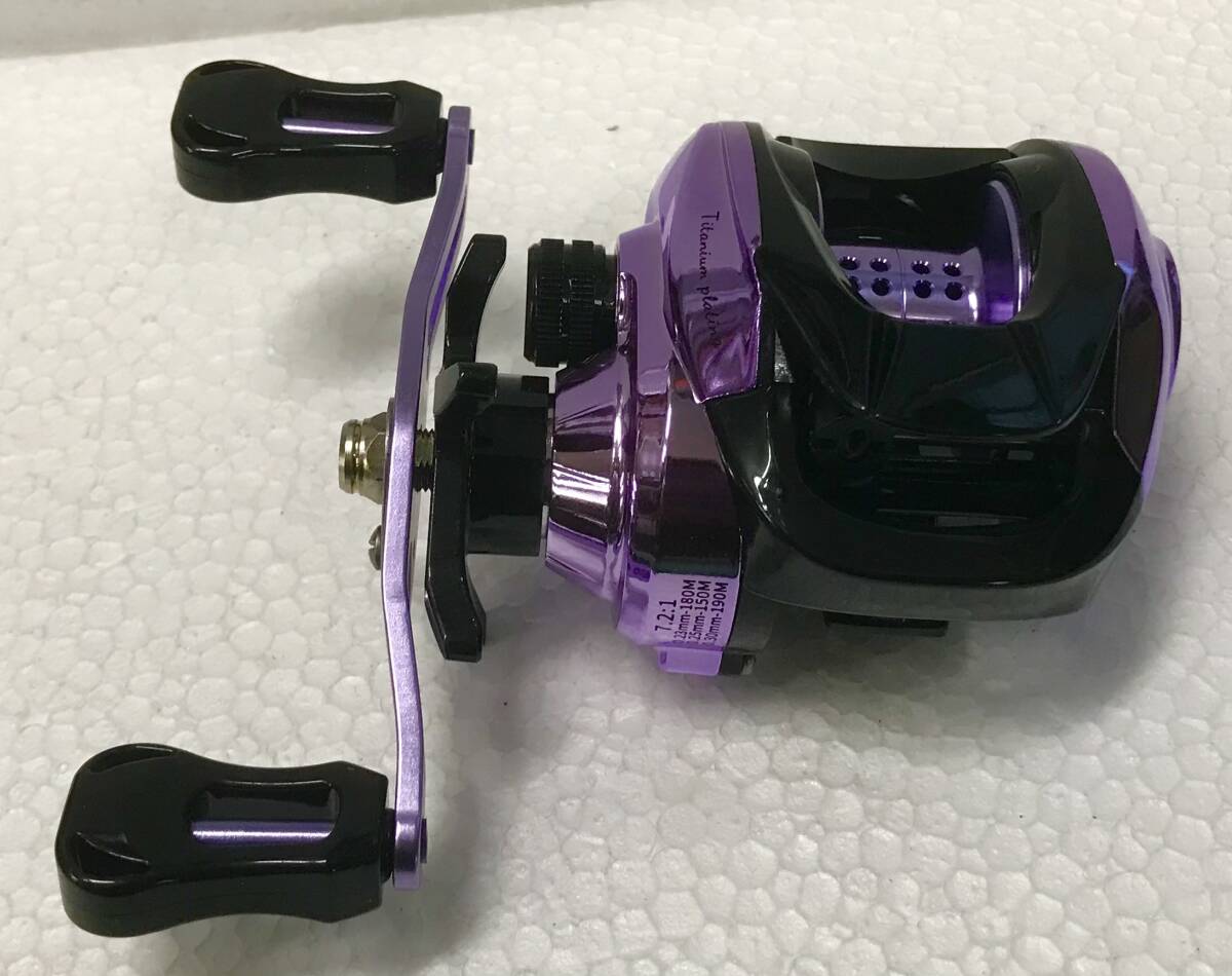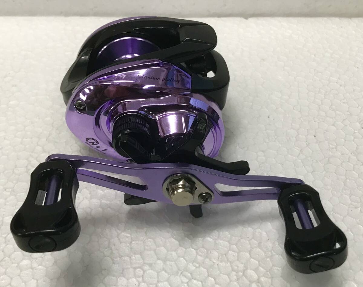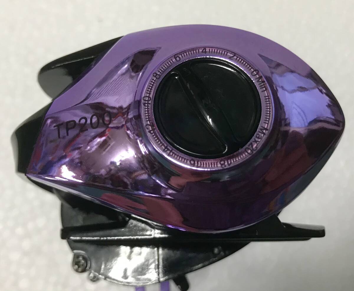 写真のHAUT TONベイトキャスティングリール TP200スペシャルカラークロームパープルメタリック右ハンドル(新品未使用)を発送します(送料無料)。