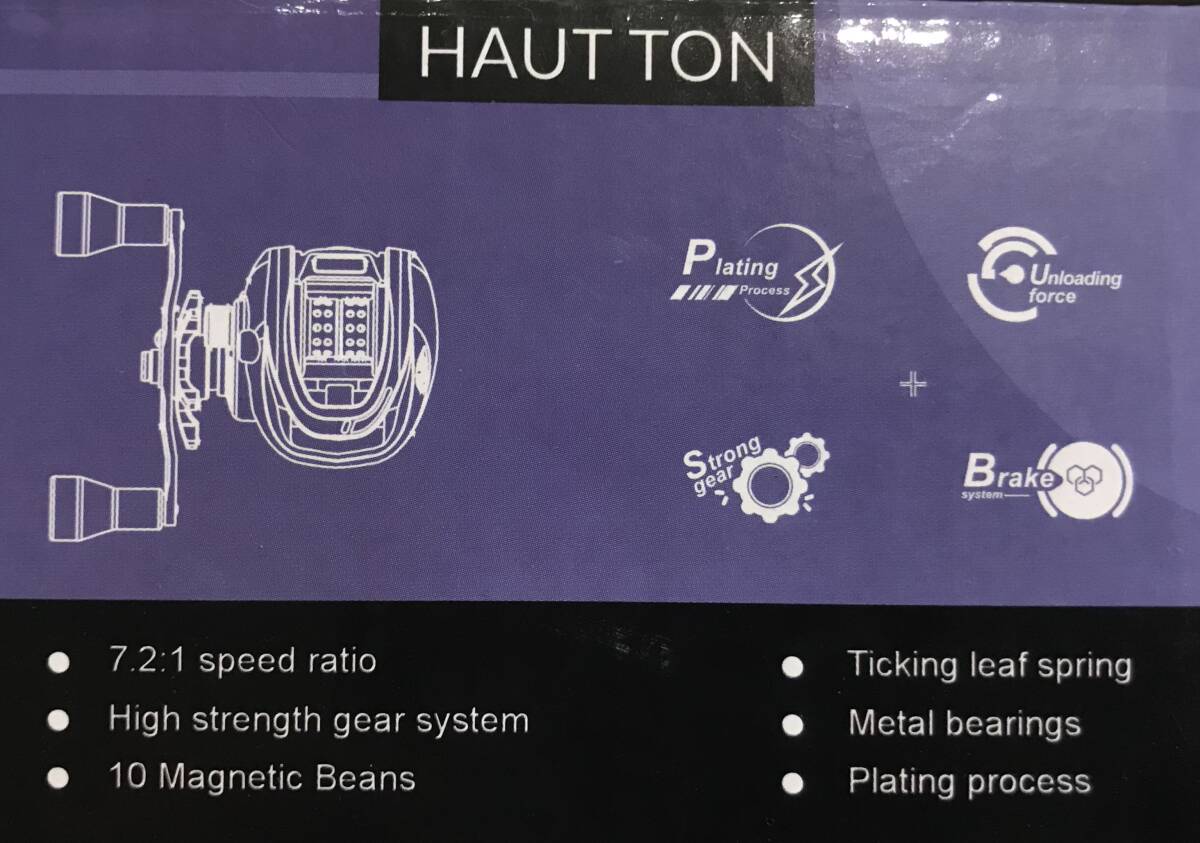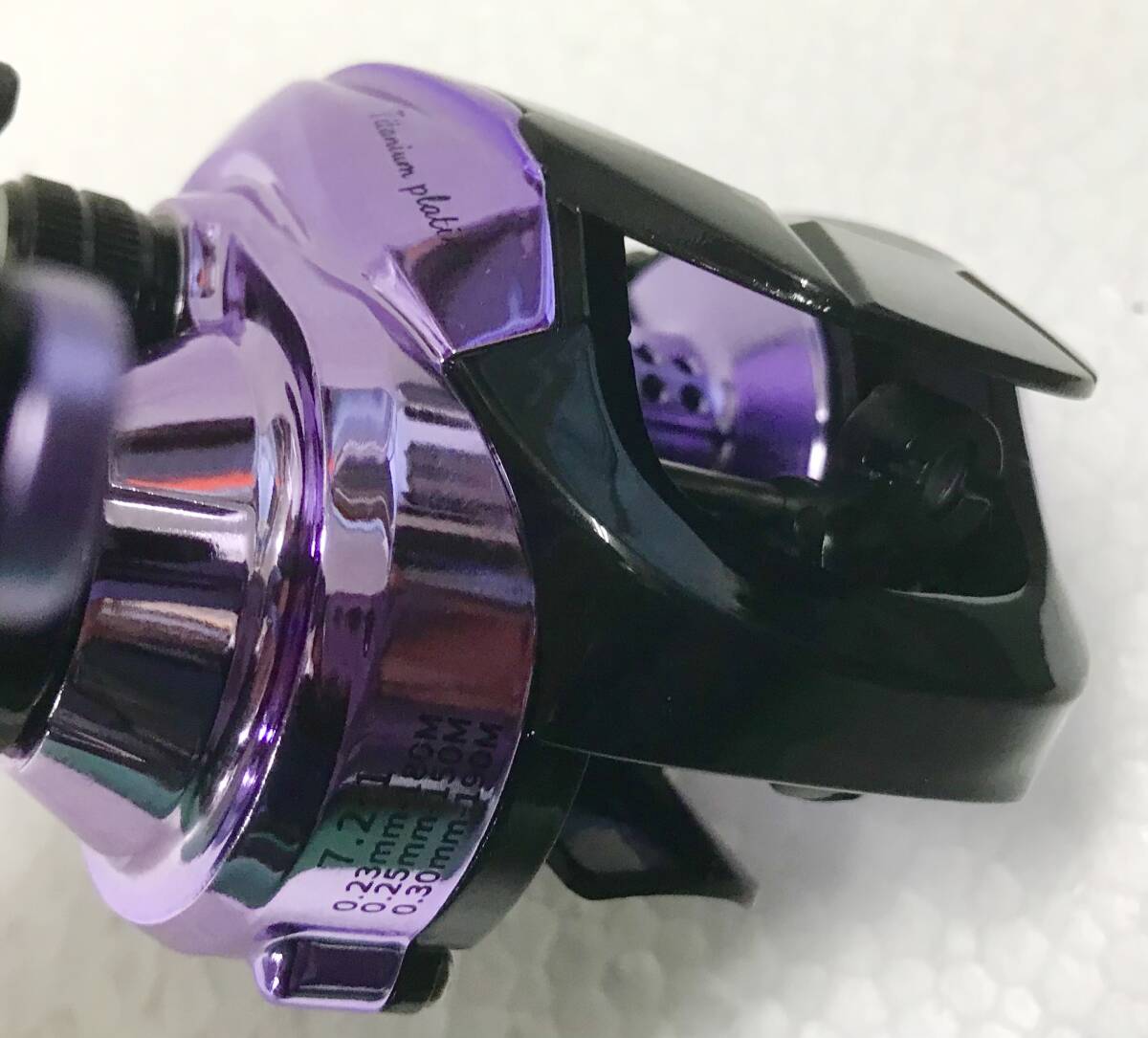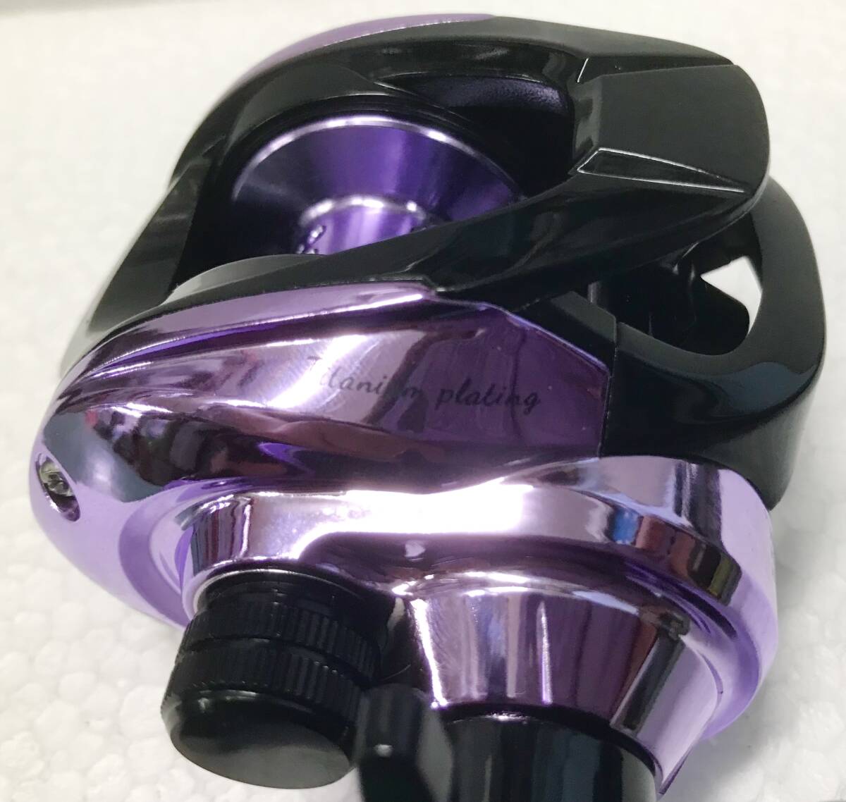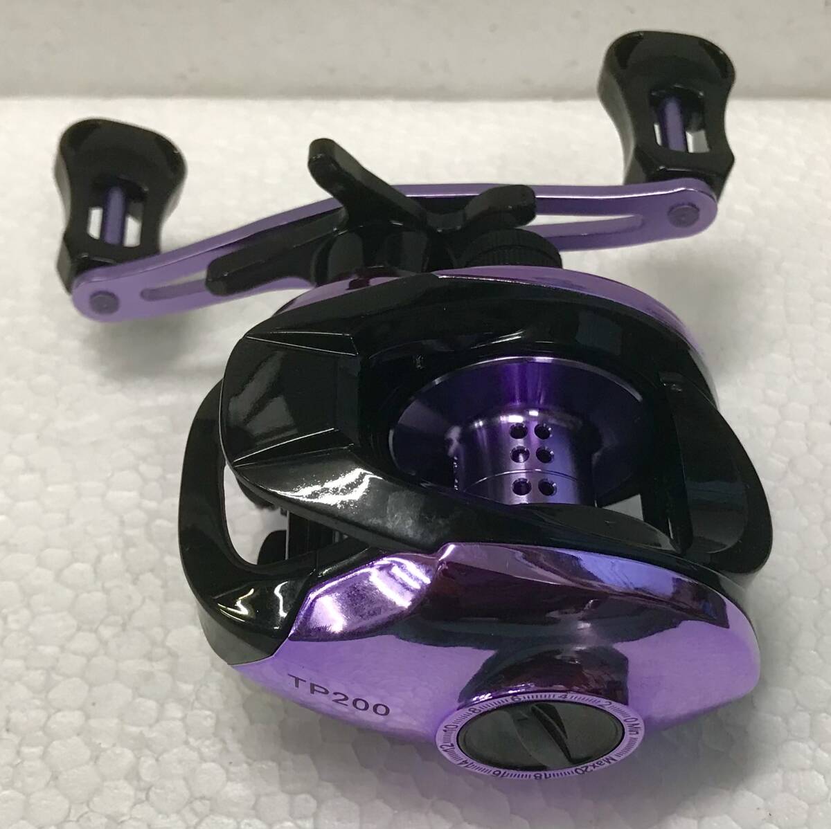 写真のHAUT TONベイトキャスティングリール TP200スペシャルカラークロームパープルメタリック右ハンドル(新品未使用)を発送します(送料無料)。
