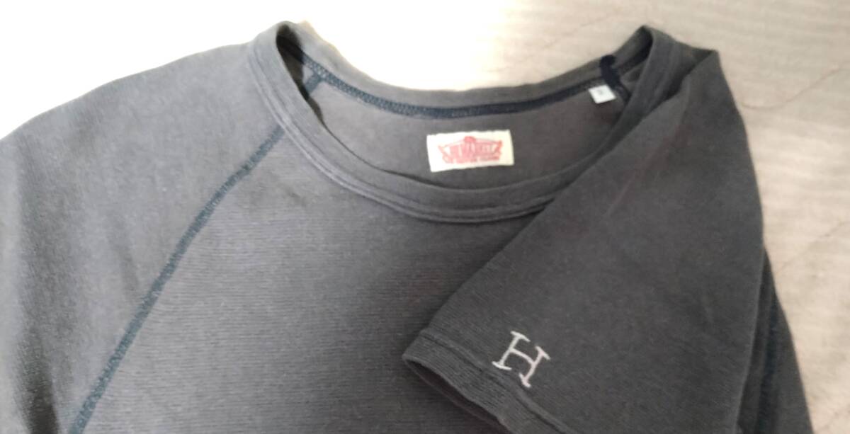 【ハリウッドランチマーケット】 HRM H刺繍 ストレッチフライス 半袖Tシャツ 日本製 黒 Mサイズ