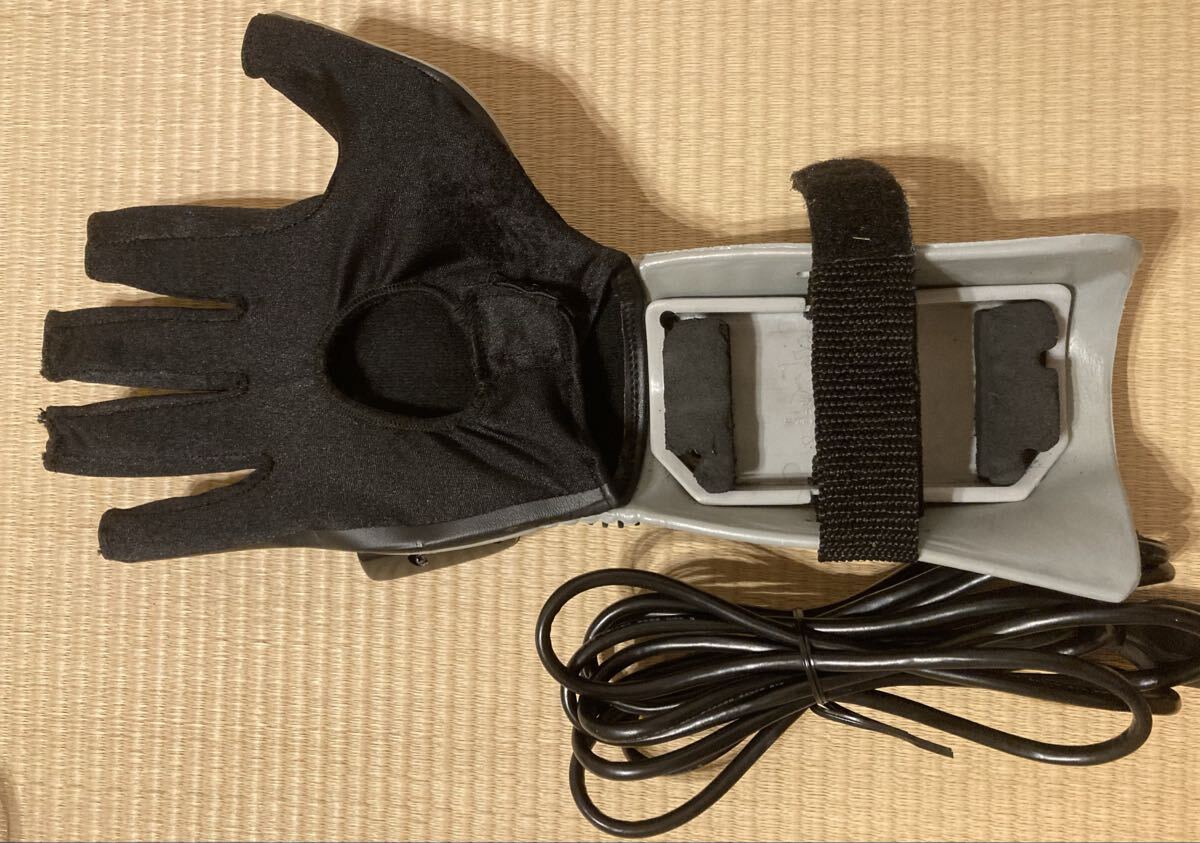 パワーグローブの本体の動作は問題なく、見た目も良いのですが、ベルクロが少しくたびれ気味なのと、スポンジが経年劣化でかなり脆いです。本体とスポンジ部分を接着していたテープが、かなり状態が良くなかったため、両面テープを交換して、本体がテープでベタベタだったのをクリーニングしてあります。