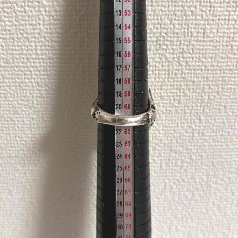 リングサイズは約21号になりますが(写真6)、エンジェルハートリングはストーン側に中抜きがされていて、さらに変則型リングであるため、正確な測定が困難となっています。なので21号以上という認識で、多少の誤差はご了承ください。