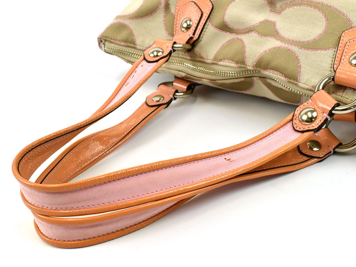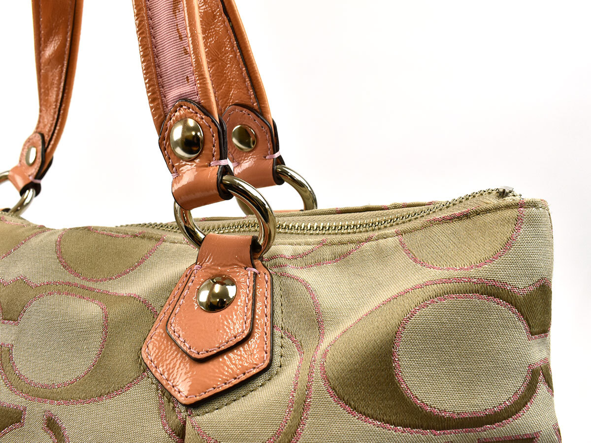 パテントレザーに素材特有のベタつき、角に黒ズミ、ショルダーにシワ、ショルダー付け根の金具と根革に固着、外側・ショルダーに多数のシミ、内側にごく小さなシミ、金具にメッキ剥がれがございます。 やや使用感が窺える商品ですので、ご理解の上ご入札をお願いいたします。 |