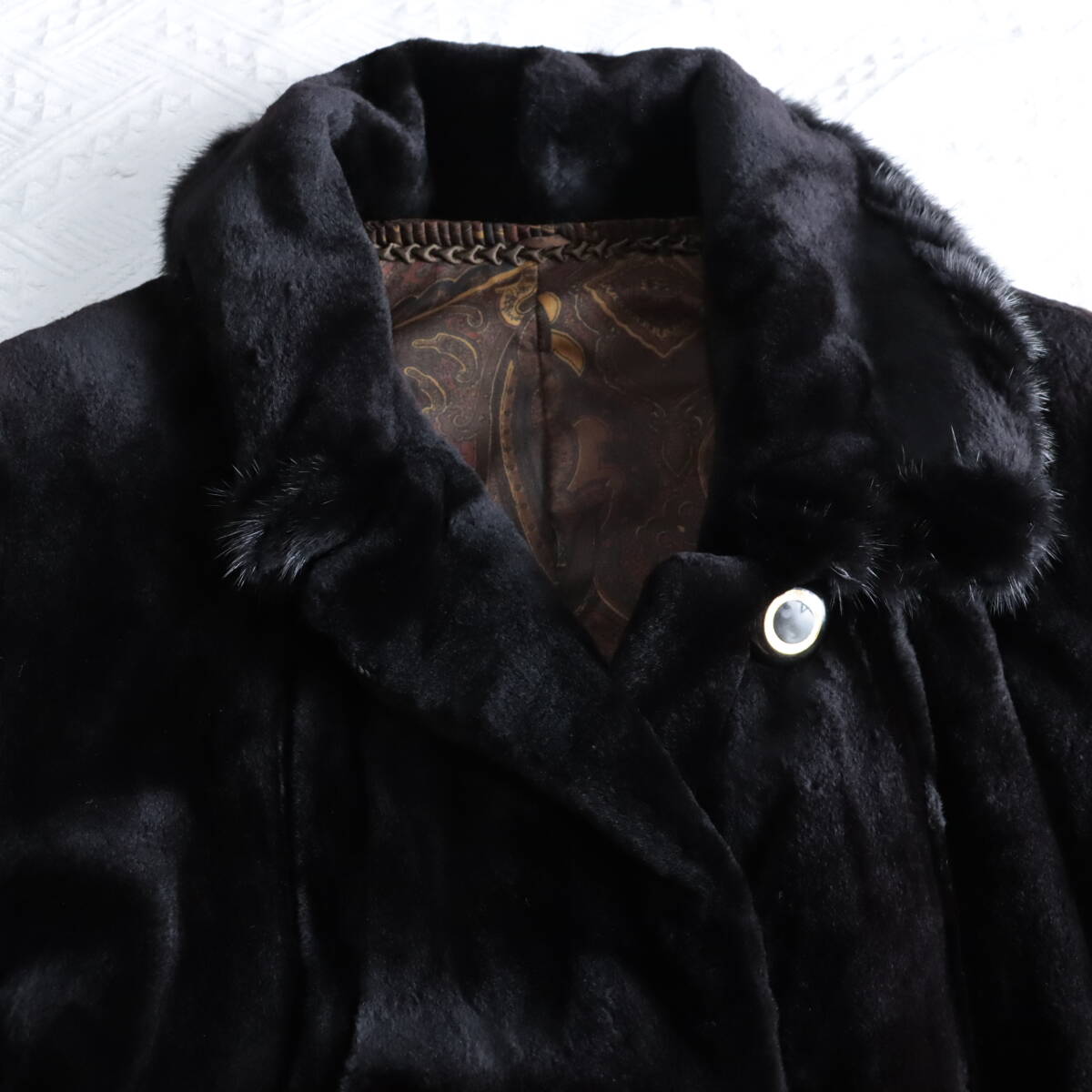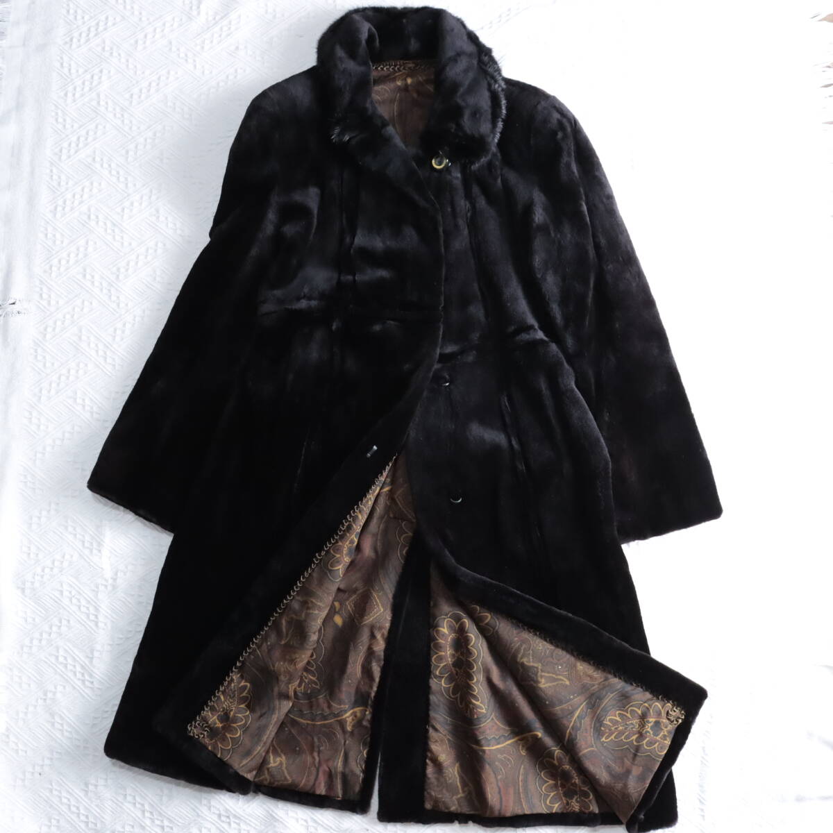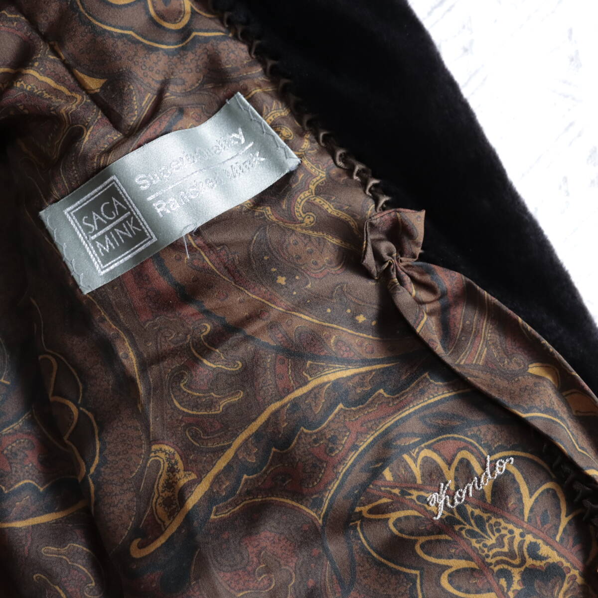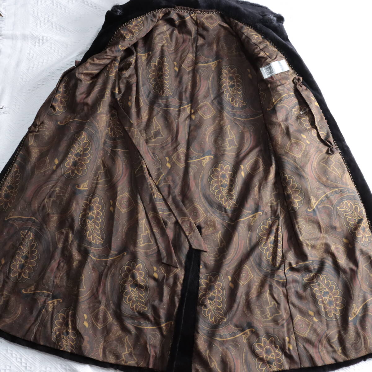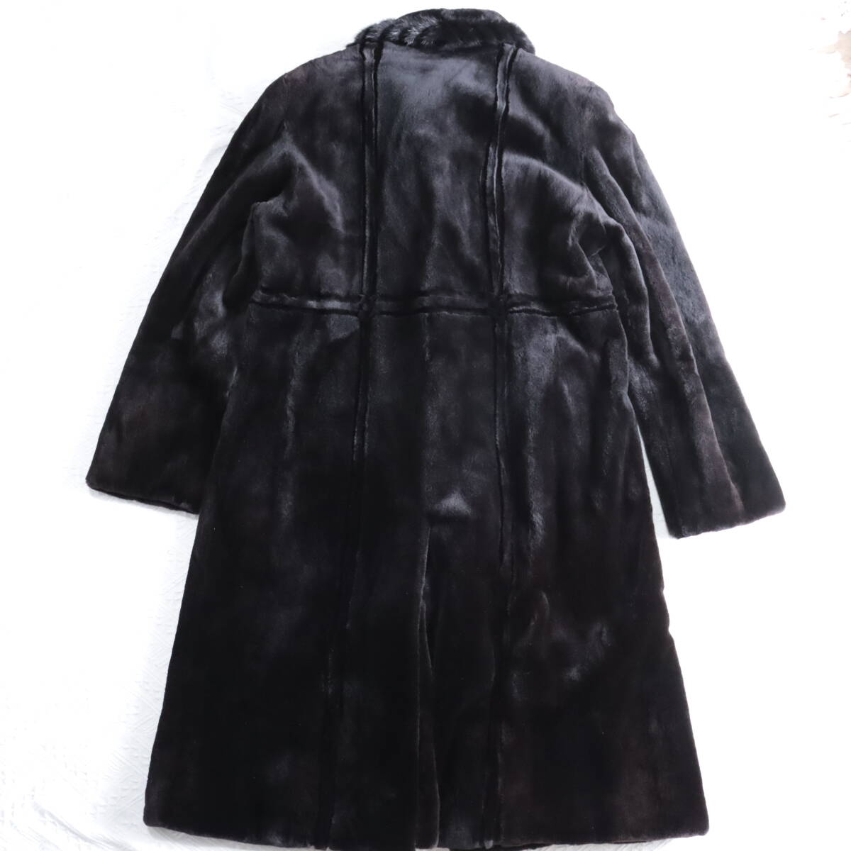 1円!【最高級シェアードミンク】サガミンク 本毛皮 SAGAMINK ロングコート ファーコート 裏地総柄 マキシ丈 ダークブラウン KESKAホック | ||