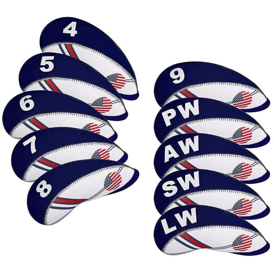 ゴルフヘッドカバー アイアンカバー アイアン用 10点セット 番手付 ネオプレーン製 伸縮性 USA 米国旗