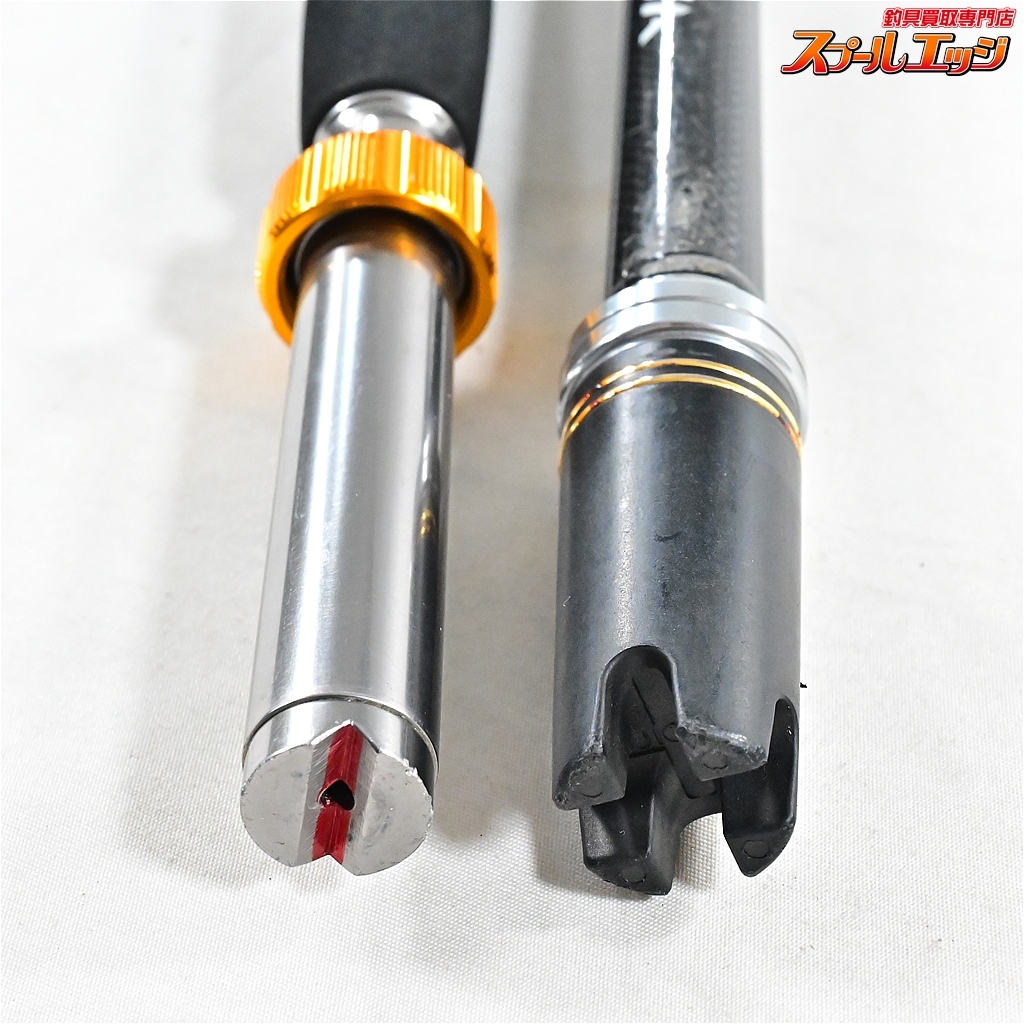 穂先詰め【無し】 ・自重(実測値):約412gとなります。 ・1番〜7番ガイドスレッドコーティング(エポキシ)に薄い横クラックがみられますが、通常利用するとできるものですので、使用に全く問題ありません。 ・バットパイプに浅い小キズがみられますが、使用に問題はございません。 小傷があり、若干の使用感を感じますが、比較的キレイな状態です! 動作はチェック済みで、安心してご使用いただけます。 たいへんお買い得です。 こちらは在庫が1点限りとなりますので、お探しの方はお急ぎください!! 【商品説明】 ・スペックにつきましては、写真のスペック表記をご覧くださいませ。 | ||||||