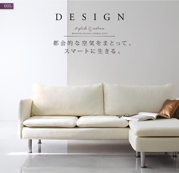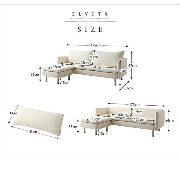 新品未使用 レイアウト自由 モダンデザインカウチソファ クッション付き アイボリーファブリック