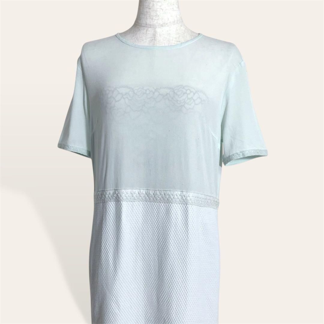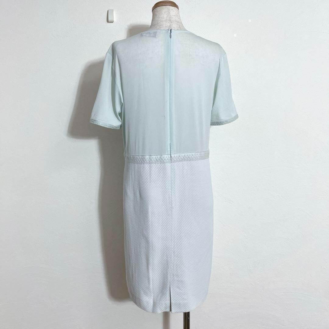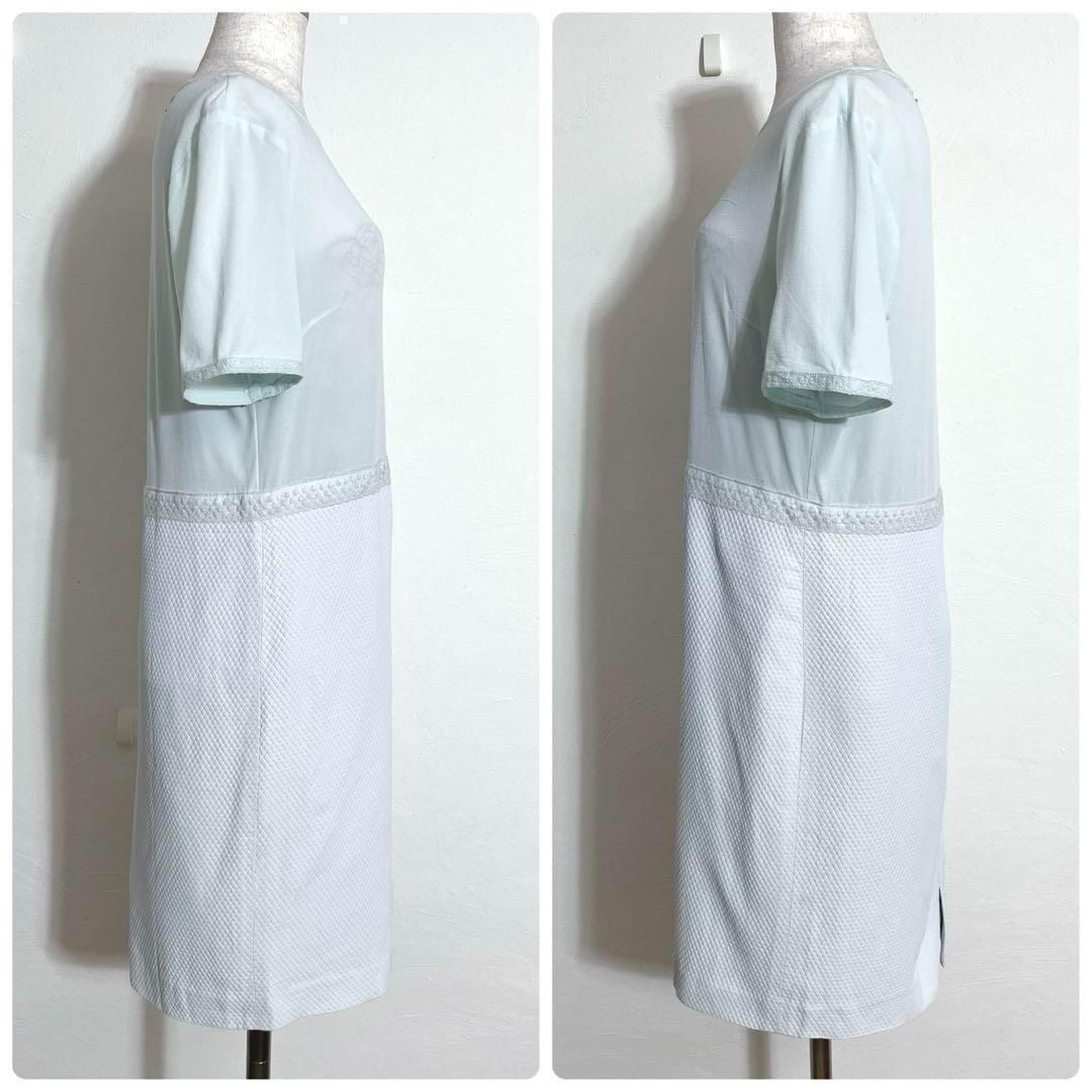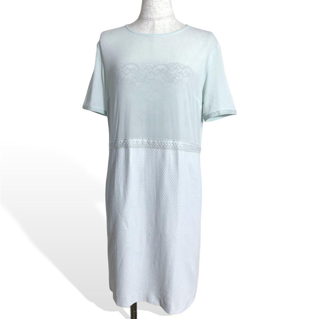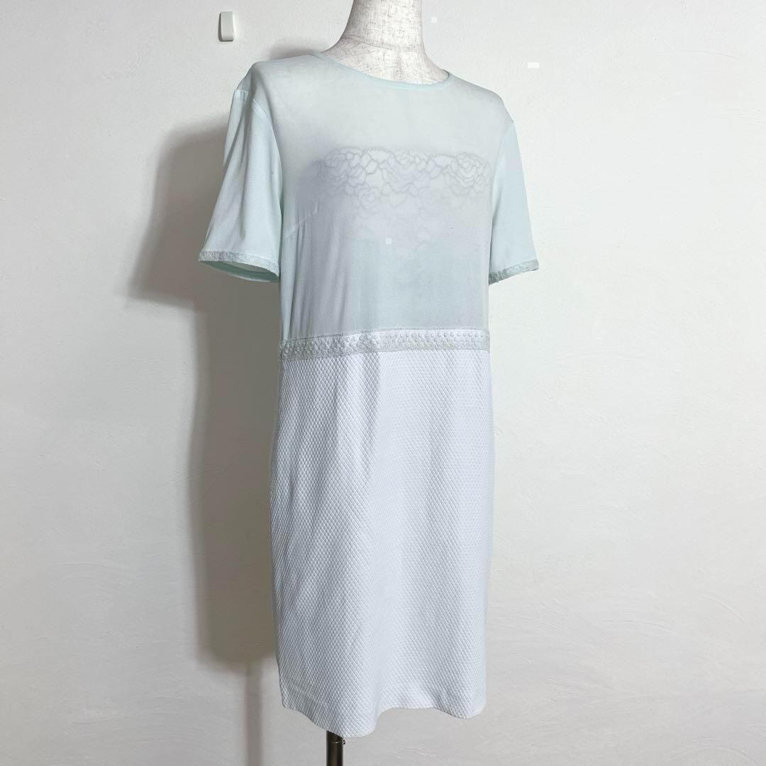 異素材 透け感 ウェストレース 切り替え 半袖 ワンピース レディース