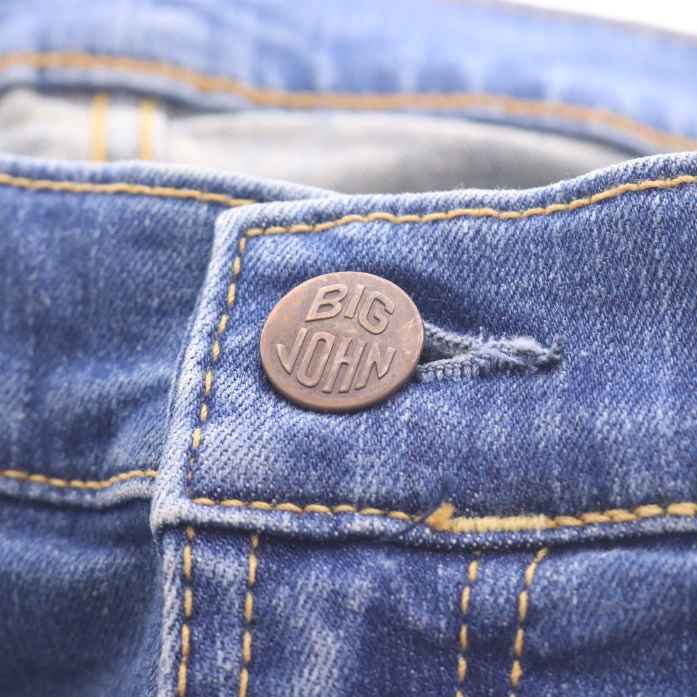 ビッグジョン デニムパンツ ジーンズ ボトムス MMM134J ハイパワーストレッチ ペイント メンズ 32 ブルー 付属品:写真のものが全てです ●表記サイズ:32 ○実寸 ウエスト周り(平置き幅×2):85.6cm 股下:74.3cm わたり:28.5cm すそ幅:15cm 前股上:26cm ヒップ:100cm ⇒ アパレル商品のカラー基準・採寸方法・海外サイズ換算表 (参考)トルソー(マネキン)は男女ともMサイズです。 素材:綿:90% ポリエステル7% ポリウレタン3% 革ラベル:牛革 | ||||||||||||||||