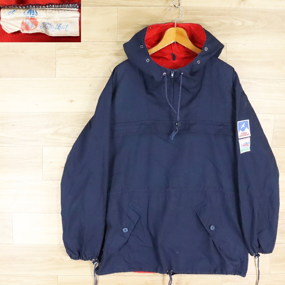 B6Y/D8.7-3 デンマーク製 アノラックパーカー プルオーバー ハーフジップ スモック フーディ ワッペン ユーロ古着 メンズ