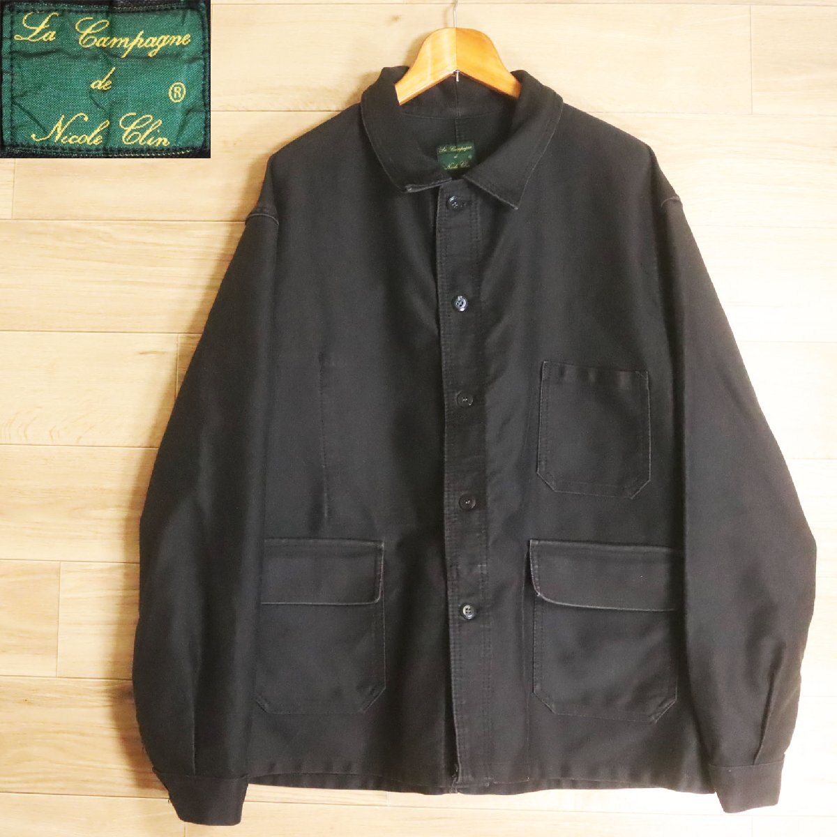 %8R/R6.19-7 フランス製 La Campagne de Nicole Clin フレンチワークジャケット カバーオール ユーロワーク 58 ブラック