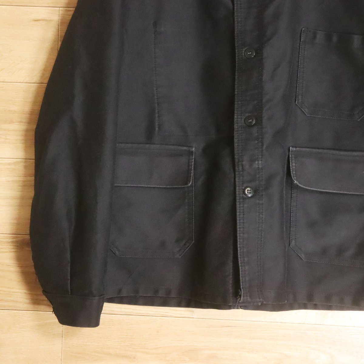 中古品です。使用感があります。襟に薄汚れ、袖先に擦り切れや破れ、袖や腹部に擦れがあります。