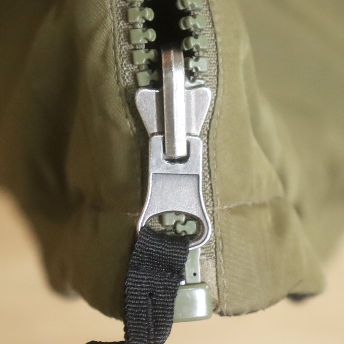 中古品です。使用感があります。両腕や裾等に汚れやシミ、裏地両脇腹や腕やポケット内にリペア跡があります。