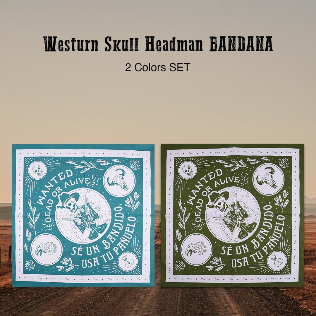 スカルヘッドマン バンダナ 2枚セット 55×55cm コットン100% カウボーイ ドクロ ガイコツ ペイズリー柄 ハンカチ アメカジ アウトドア