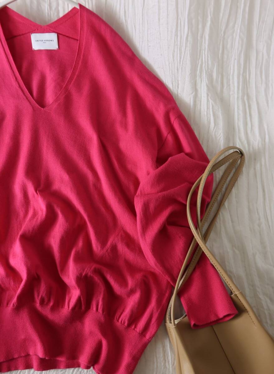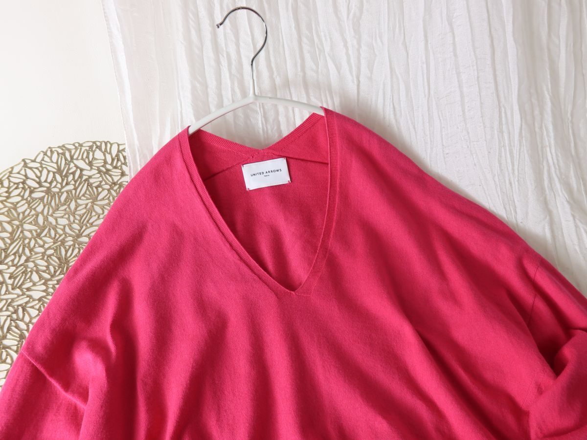 1.5万☆ユナイテッドアローズ UNITED ARROWS☆洗える バックボリューム Vネックニット 日本製☆A-O 5859