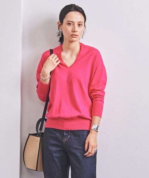 すっきとしたVネックのドロップショルダーニット。後身頃にボリュームをもたせたシルエットにより抜け感の漂う一着。バランスの良い一枚着ニットでボトムスを選ばず着まわせます。