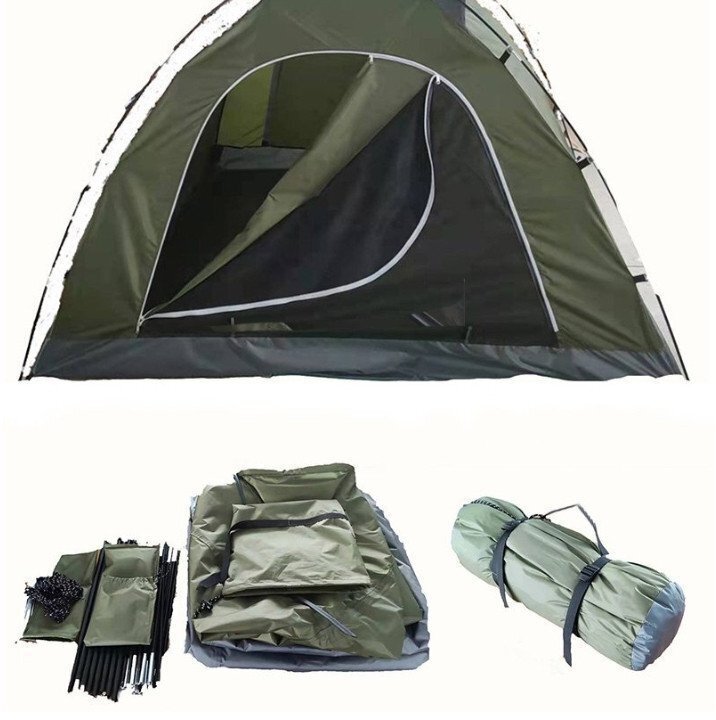 テント 3-4人用 ソロテント 軽量 4シーズン 二重層 防水 登山テント スカート付き 防雨 防風 防寒 キャンプ アウトドア 簡単設営 グリーン