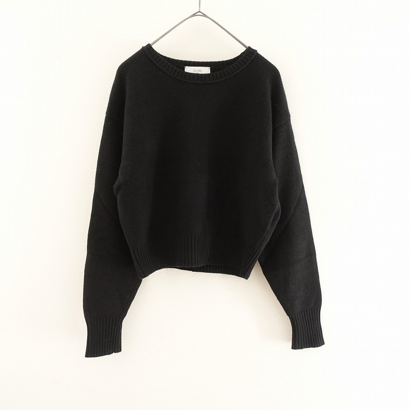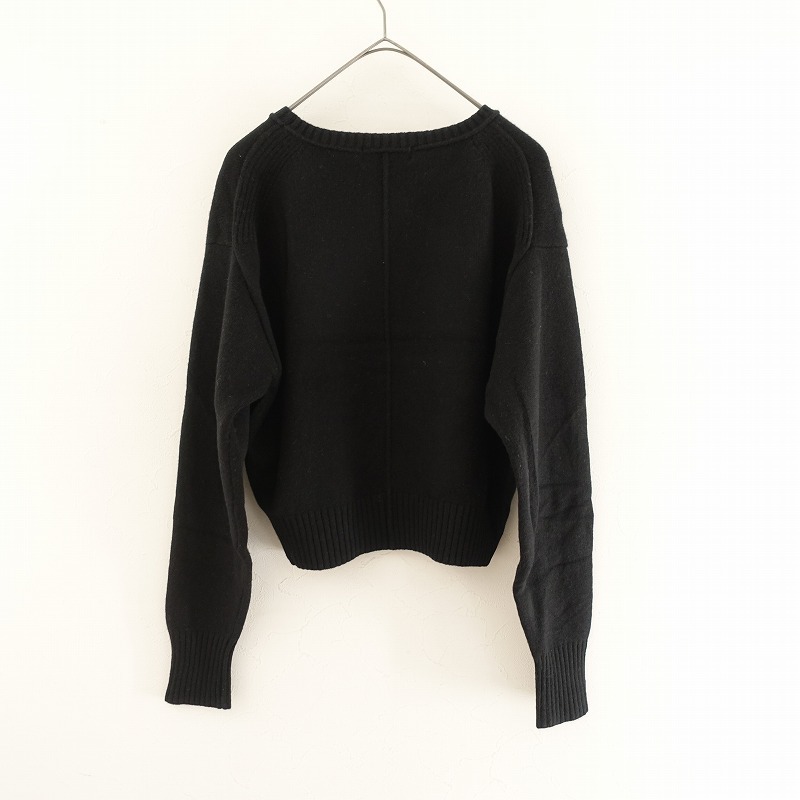 2023年秋冬コレクション SLOBE IENAのウールクルーネックセーターです。カラーはブラックです。ふっくら、しっとりとした優しい肌触りのウールニットを使用。薄すぎず程よい厚みのニットプルオーバーです。少し肩が落ちたドロップショルダー、バックのセンターシームライン、学区ショルダーの目立てリブなど拘りが見受けられます。ポケットはございません。定価(メーカー希望小売価格)12,100円の商品です。 |
