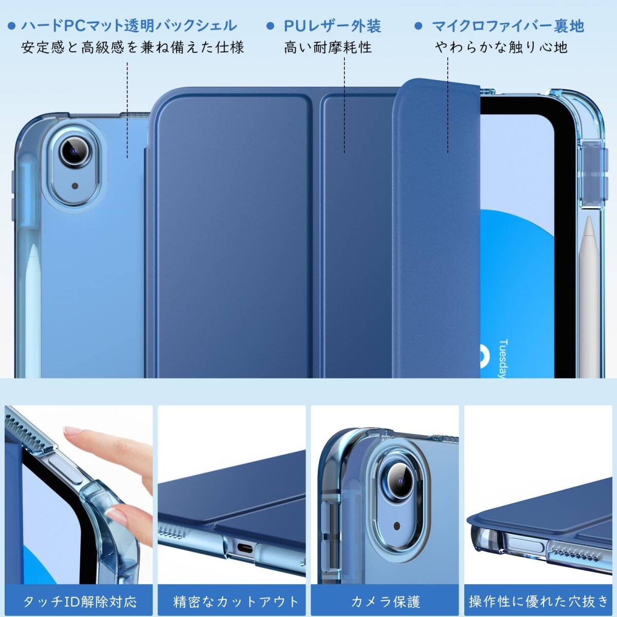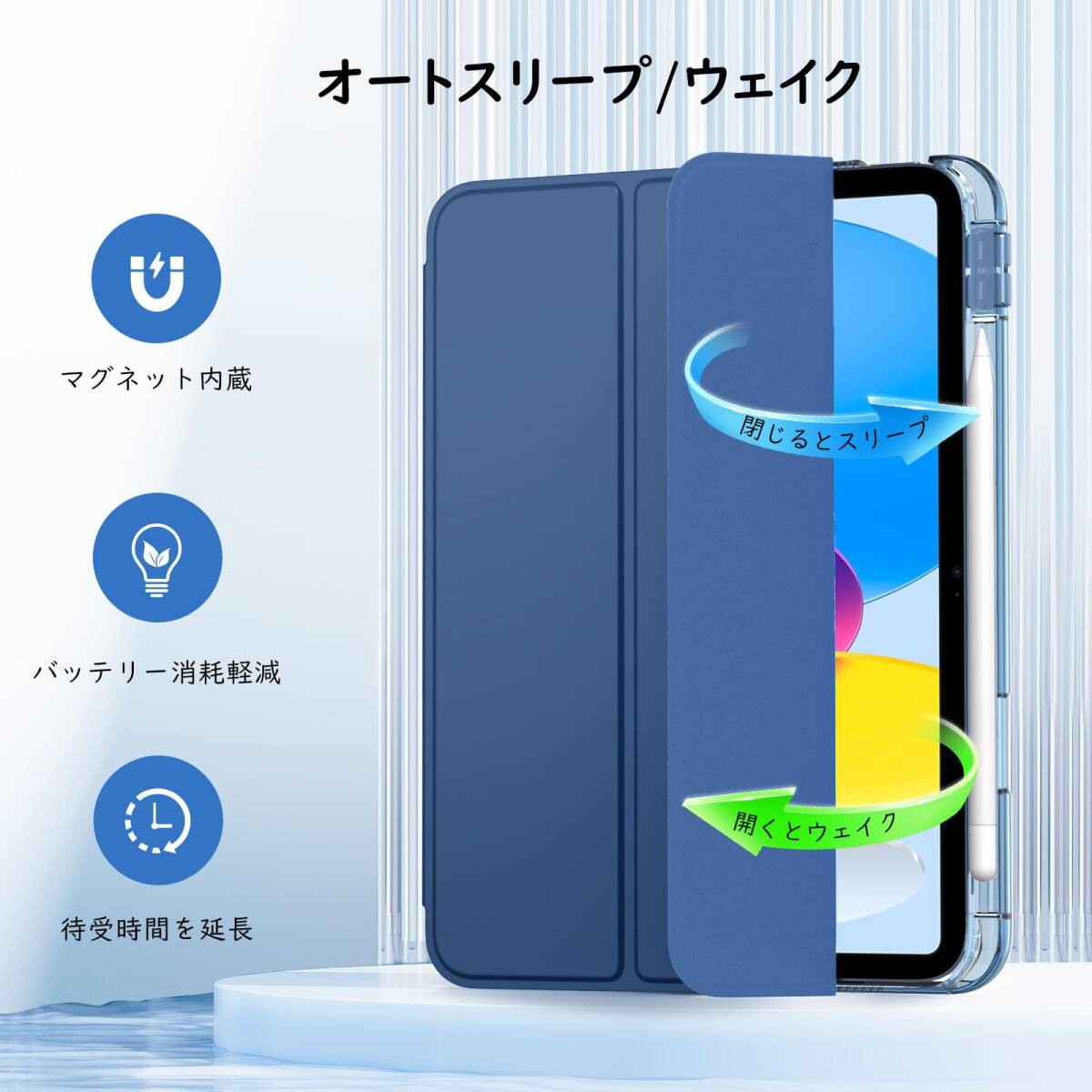 MoKo iPad 第11世代 (A16) 2025 / iPad 第10世代 2022 ケース 11/10.9インチ オートスリープ対応 PUレザー外装 裏地マイクロファイバー ペンシル収納スロット付き 軽量 薄型 傷防止 スマートケース NavyBlue